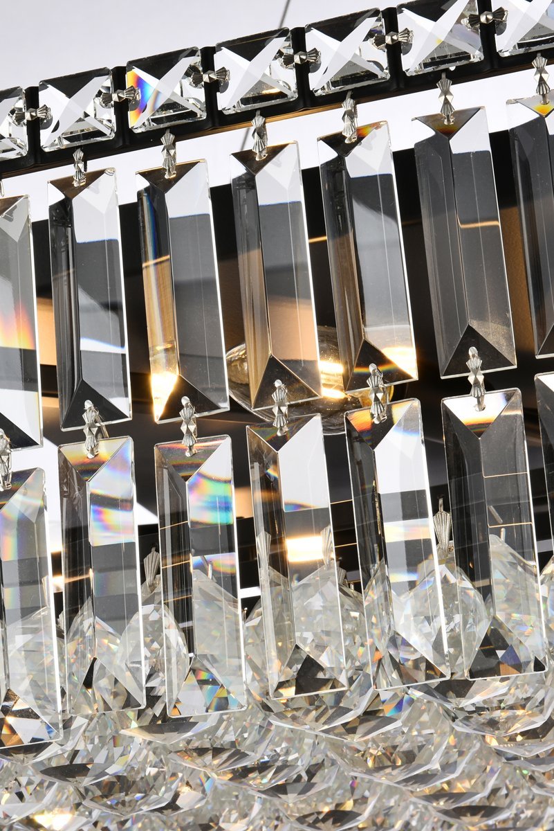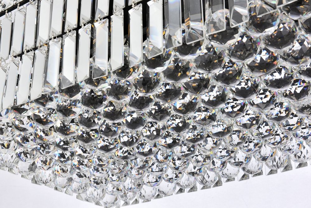 A riot of shapes and textures, Maxime collection flush mounts sparkle in a mosaic of crystal tiles. Square and rectangular precision-cut crystals form the flamboyant exterior while faceted crystal balls create a bubbled effect for light to shine through beneath. Available in a black or chrome finish with clear crystals, these lamps are a luxurious addition to a kitchen, stairwell, foyer, or living room.