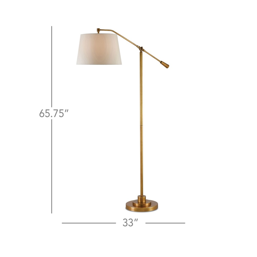 A nod to Americana and the utilitarian leanings of our colonial era, the Maxstoke Floor Lamp has an adjustable arm that is so appealing it would be just as brilliant in an office setting as in a living room. The metal on the lamp has been treated to an antique brass finish. The beige shantung shade harkens back to bygone times to bring this lamp extra charm.