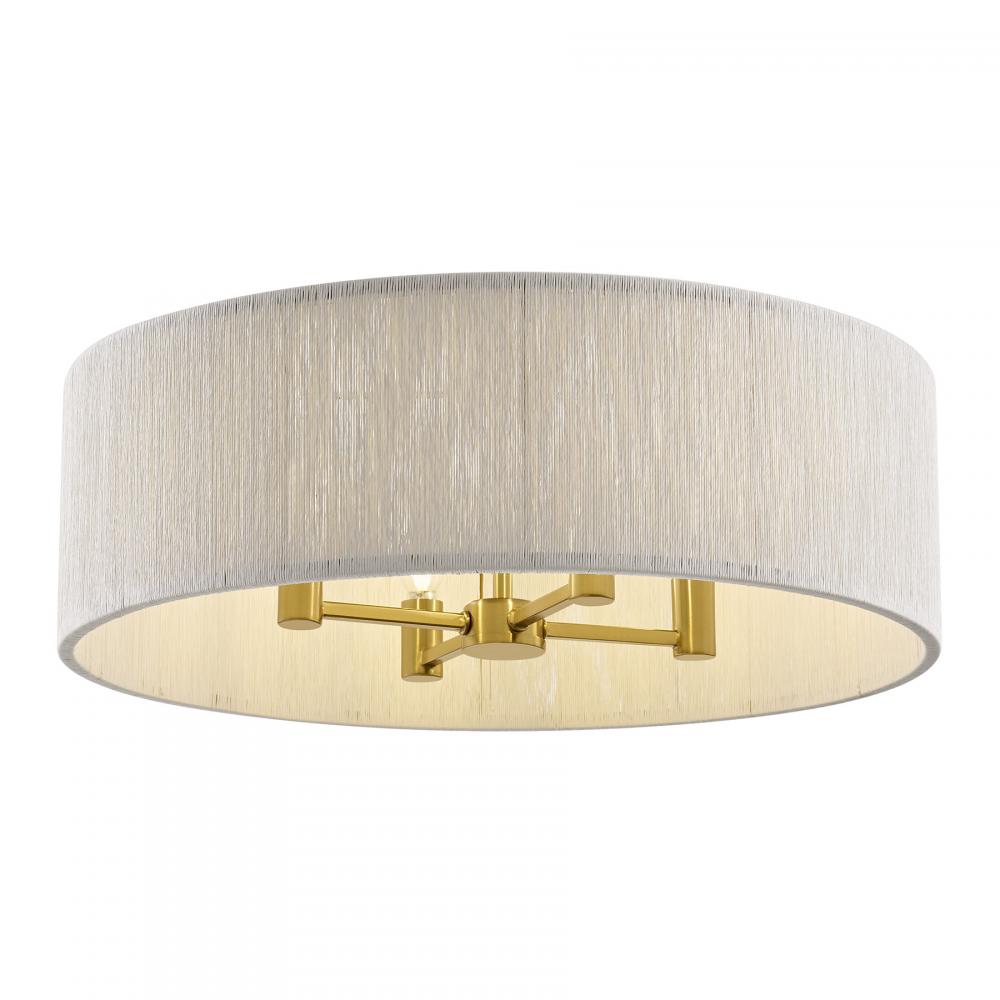 The Savoy House Maynard 4-light flush mount boosts the style and illumination of any space. Its shade is intricately woven with soft white rope, infusing your room with relaxed organic style. The Warm Brass finish adds a hint of glamour. Maynard is 9.38" in height and 22" in width. It uses four candelabra size bulbs of up to 60 watts per bulb. Bulbs not included.