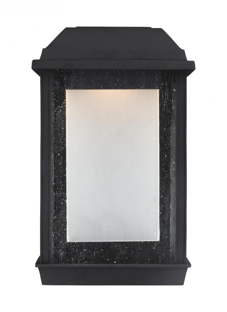 The transitional McHenry lighting collection not only features energy-efficient LED lighting, it's made of StoneStrong material for added strength, durability and longevity. All McHenry products feature advanced, warm-on-dim technology with a color temperature that warms when dimmed, from 2700K to 2200K. The fixtures feature panes of Clear Seeded glass which subtly reveal White Opal inner glass, and the framed architectural details complement the chamfered edges of the roof line, all in a Textured Black finish. McHenry has a 5-year warranty, and is recommended for coastal areas.