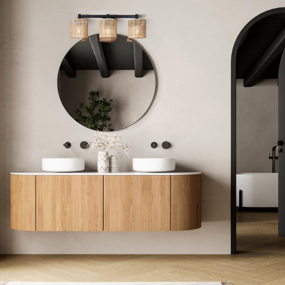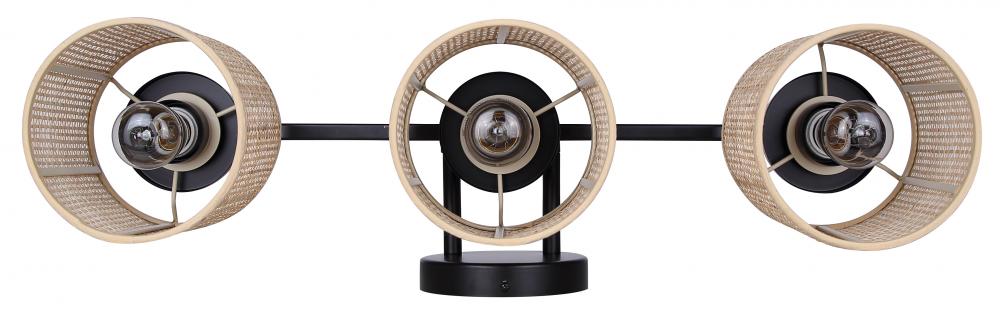 MEADOW, IVL1206A03BK, MBK Color, 3 Lt Vanity, Natural Rattan, 60W Type A, 25.25inch W x 9inch H x 7.875inch D, Easy Connect Included
