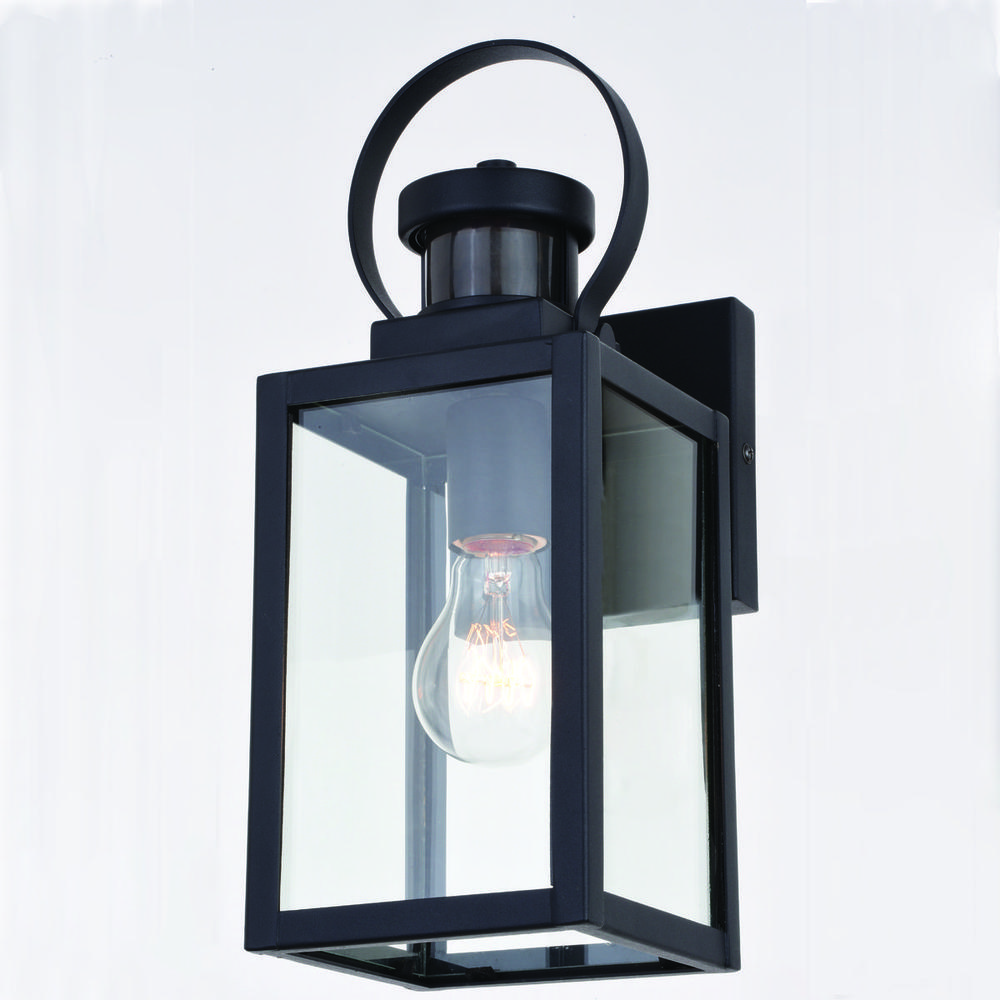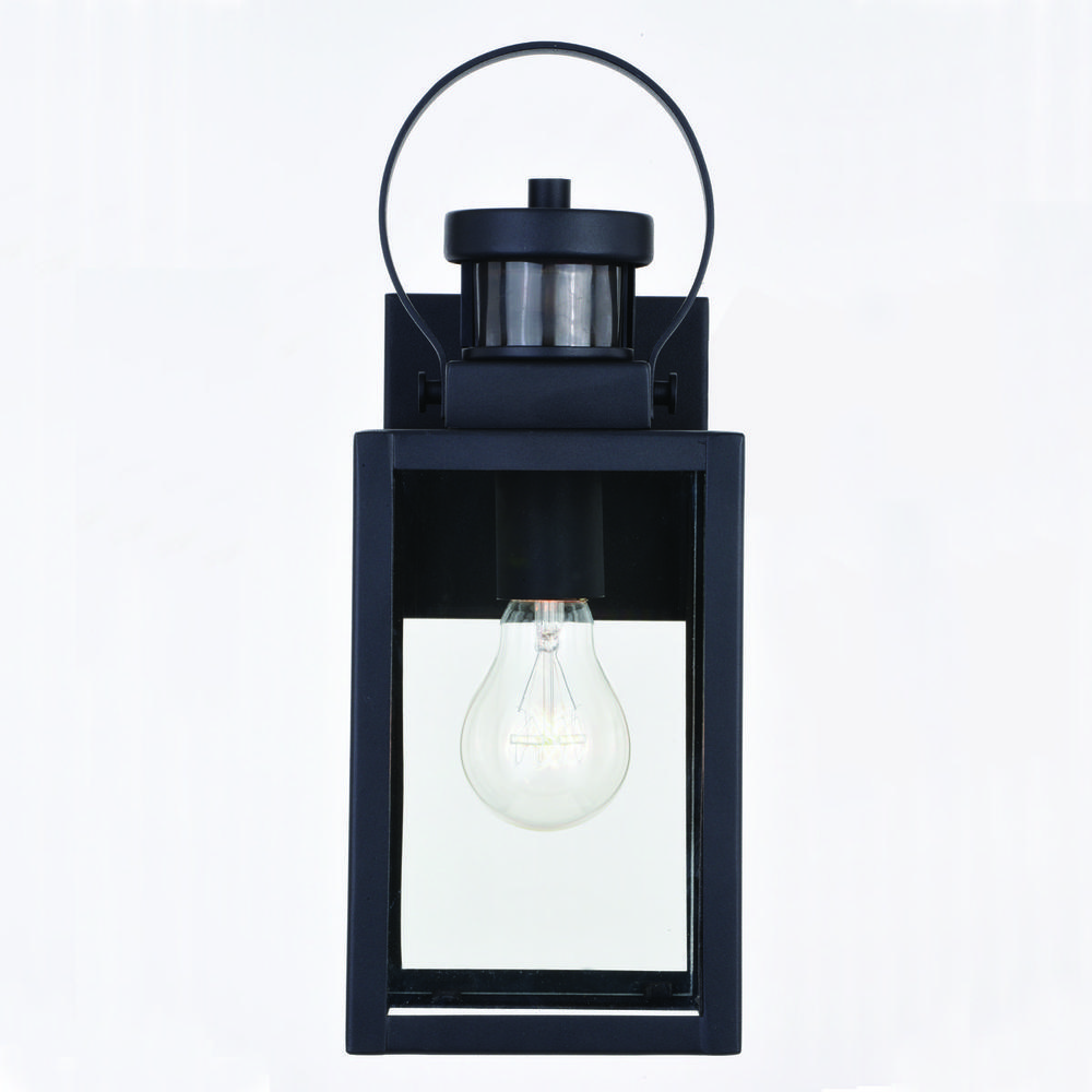The Medinah is an example of classic minimalist elegance. Large panes of clear glass are encased by textured black frames. The top looped lantern handle adds an additional focal point to the overall design. This outdoor wall light is ideal for your covered porch, entryway, garage, or any other area of your home. Dualux patented dual-level security lighting is outdoor lighting made smarter—brighter light at dusk, dimmer at night, brightening instantly when it detects motion. Designed to reliably and effortlessly enhance your home’s beauty, security and efficiency from dusk to dawn with its built in motion sensor and photocell.
