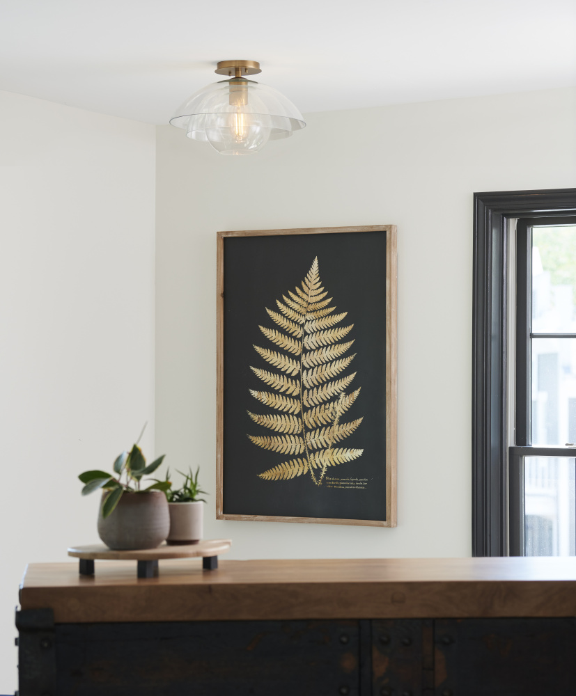 Lotus reveals itself in layers of three concentric clear glass shades nested together in a unique and alluring shape. A true shapeshifter, Lotus can be installed as a pendant or close to the ceiling. Available in either Heritage Brass or Black finish options, this transitional design grows even more glamorous when illuminated.