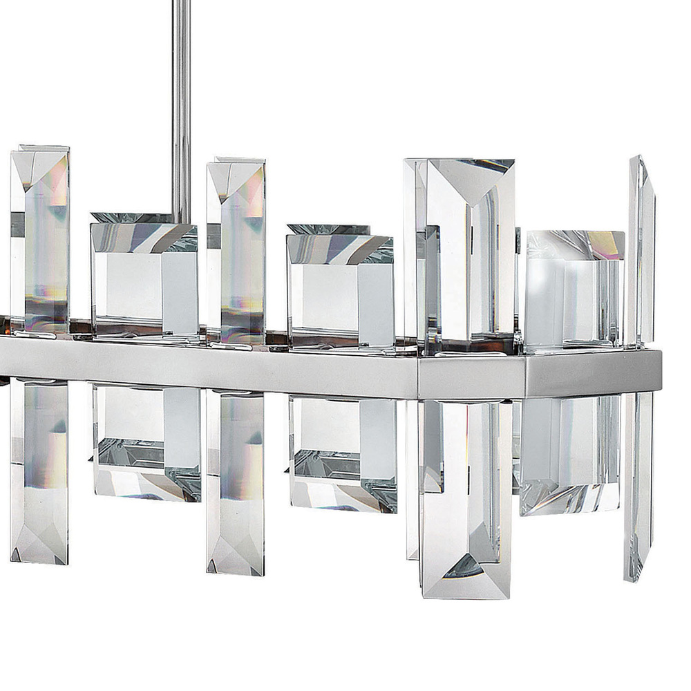 The luxurious composition of Odette's modern design forms a statement-making jewelry piece, certain to be the center of attention. Emerald cut, solid glass crystal panels add breath-taking sparkle. Odette is offered in a gleaming Polished Nickel or finish.