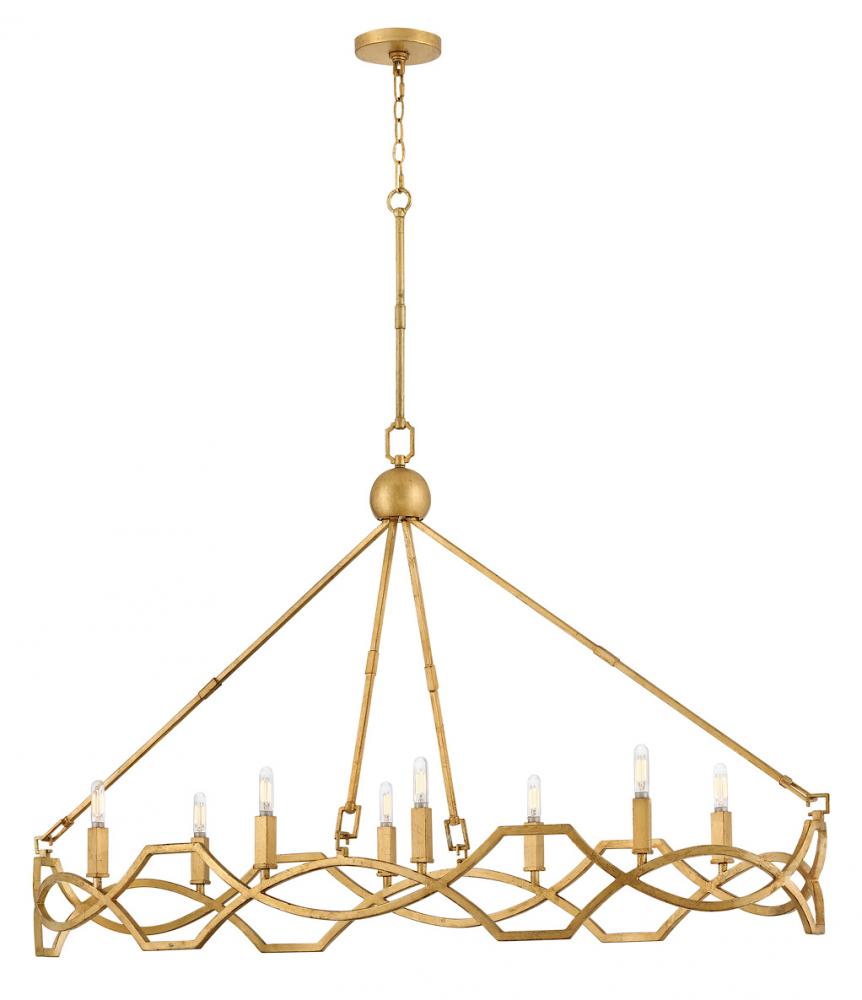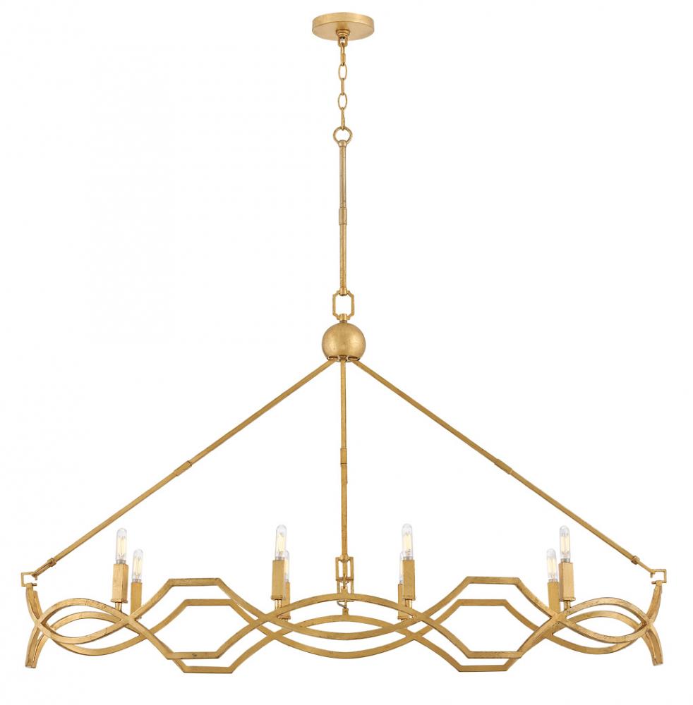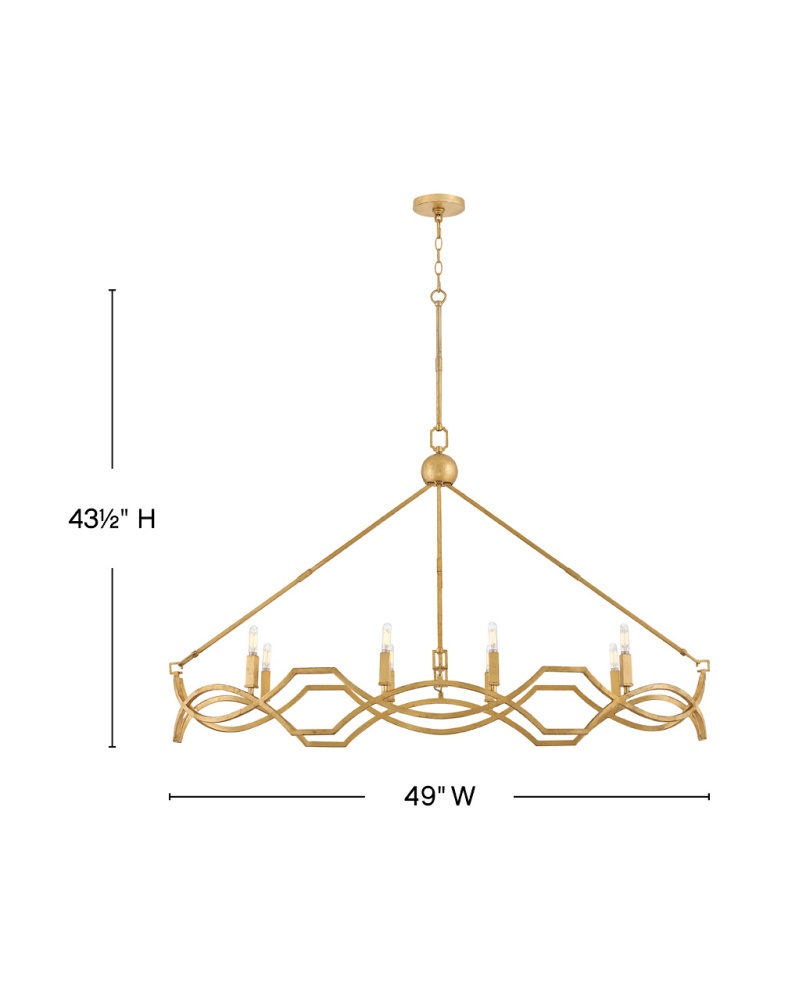 Leona’s decorative scrollwork is crafted from a gently curved, smoothly welded frame finished in hand-leafed Distressed Brass. Clean shapes complemented by exposed candelabra lamps create a family of formal fixtures with undeniable charm.
