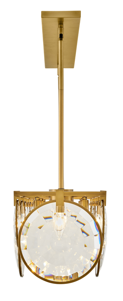 Nala is striking from any angle with a traditional silhouette and elegant eye-catching details. Multi-faceted, optic-crystal lenses surround the circular frame and attach with cast clips in Heritage Brass and Black finishes.