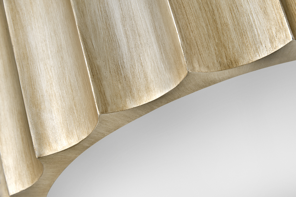 Gia is a vintage-inspired showstopper. Dramatic, handmade scalloped edges adorn the outer rim of each fixture to evoke old-world glamour while hand-painted Brushed Graphite and Champagne Gold finishes complete the look. The upscale design casts light through etched glass for a soft, warm glow.