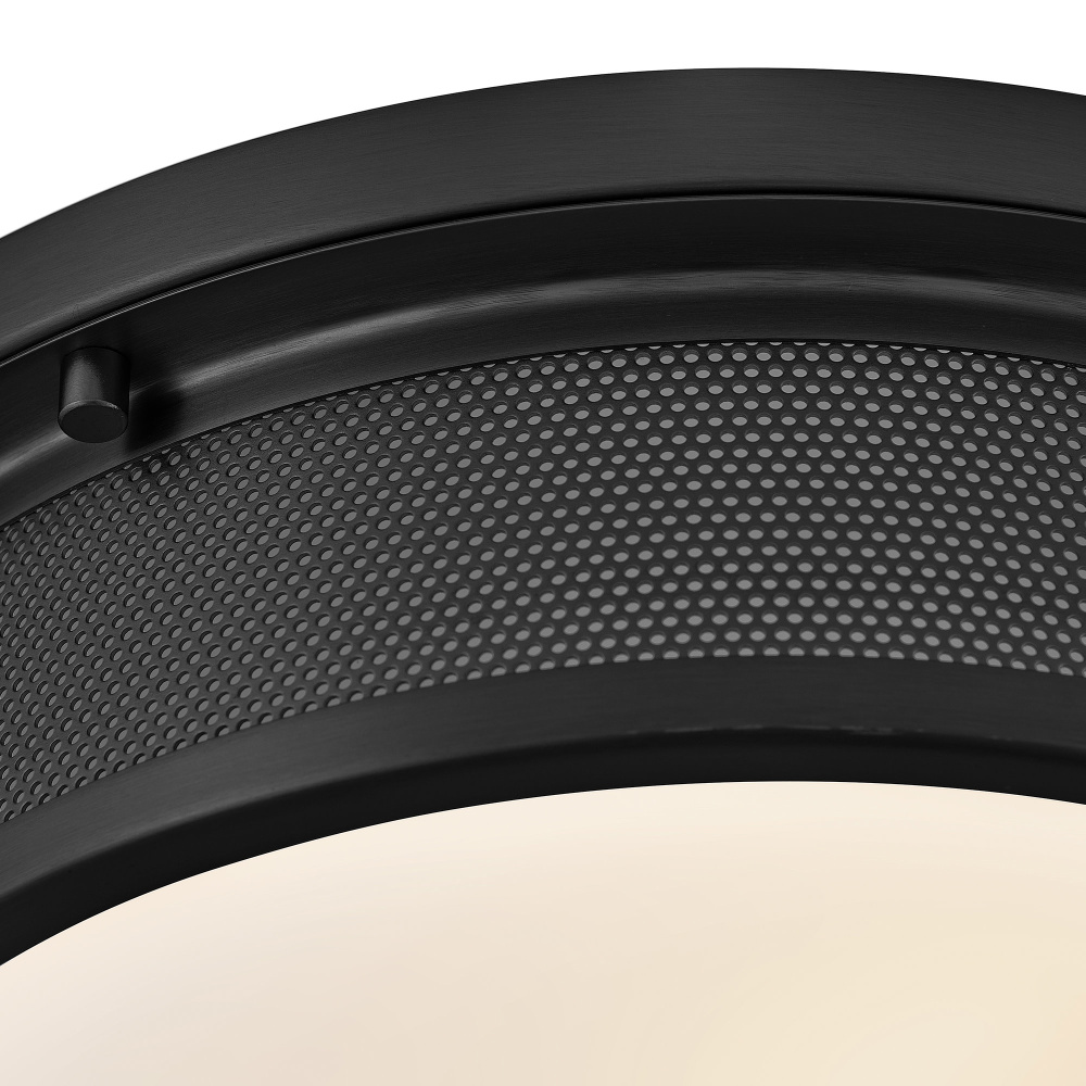 Precisely shaped with chic, minimalist style, Pierce’s low-profile silhouette easily fits any bathroom or living space. A large Etched Opal glass diffuser is framed in a Black or Lacquered Brass finish to easily complement your decor, while a band of perforations casts a glow across your ceiling.
