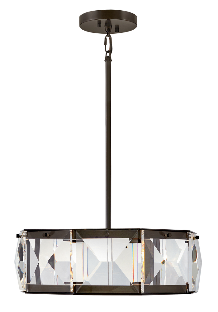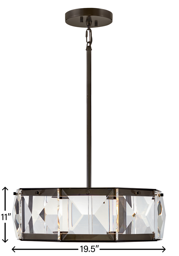 Jolie is a unique blend of sophistication, style, and technology. Integrated LEDs are sleekly concealed within gleaming Heritage Brass rings at the top and bottom of the design. Robust blocks of faceted crystal radiate with light, creating a transfixing silhouette while providing outstanding illumination.