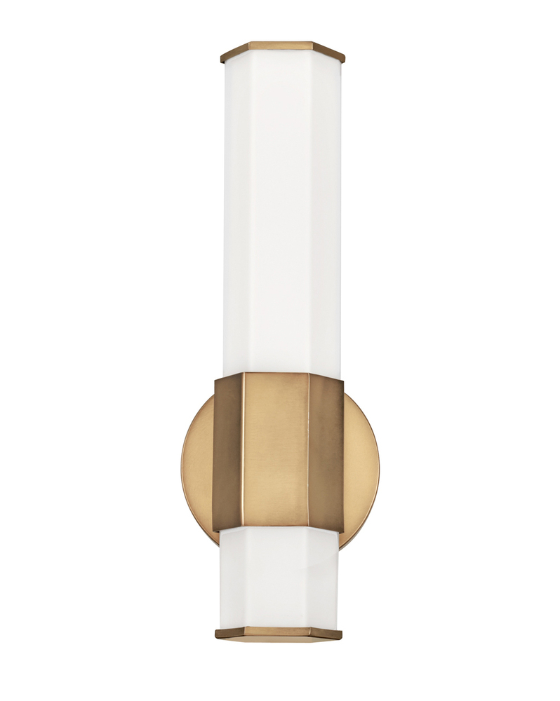 View the many sides of Facet. Interesting angles combine with bold metal features to create an edgy and contemporary profile that is unpretentious yet unforgettable. Hexagonaletched opal glass is showcased by Heritage Brass or Black Oxide finishes.