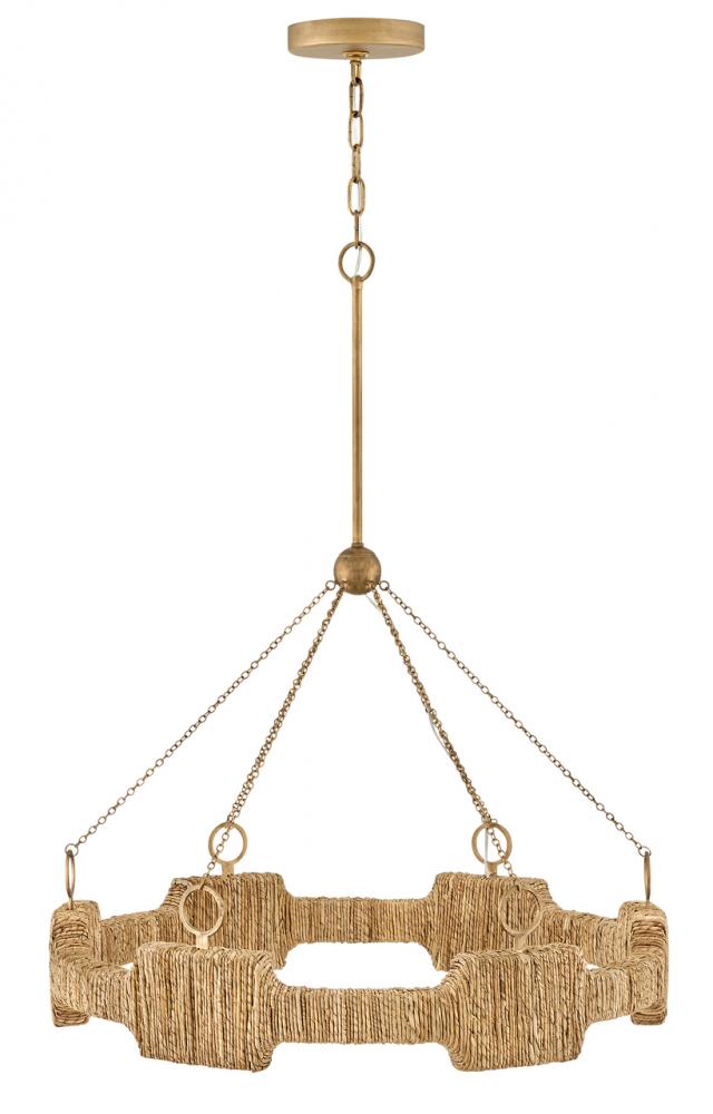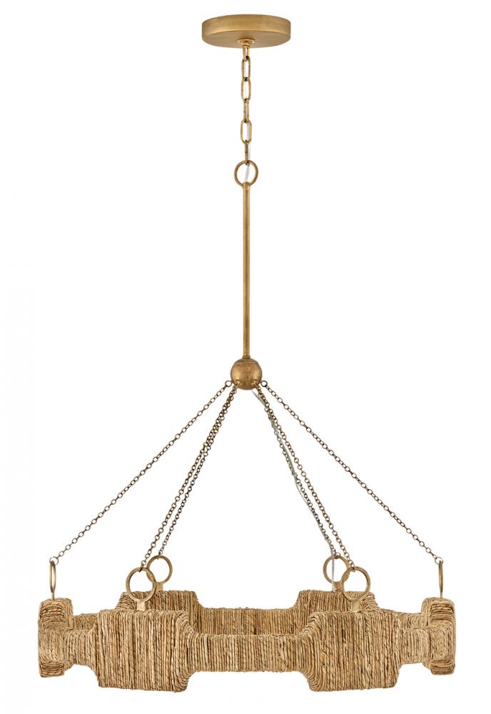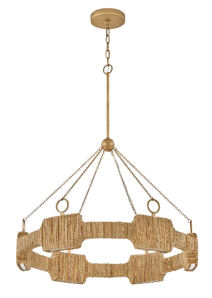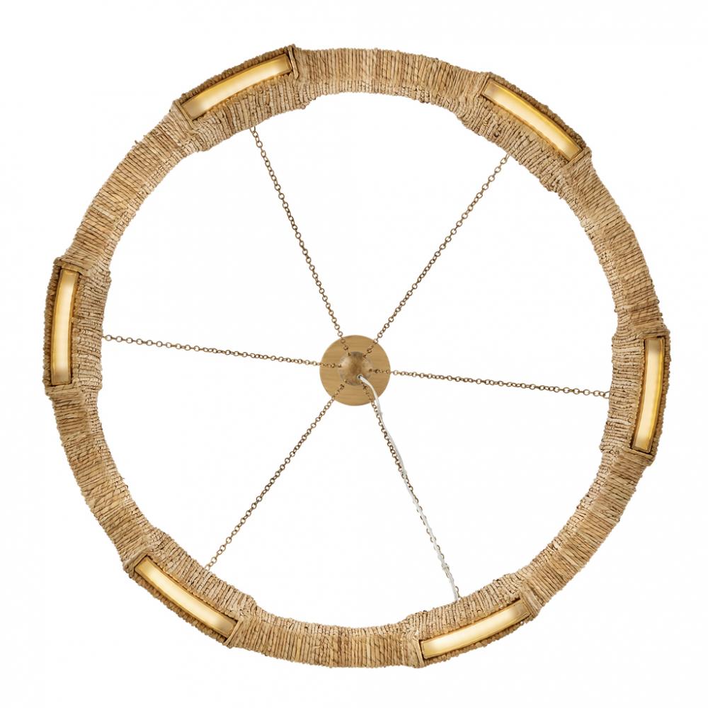 Raffi's coastal bohemian vibe is balanced by its distinctively modern shape. A unique LED design offers abundant light, while a slim frame hand-wrapped in natural reeds provides unexpected texture. Bold Carbon Black or Burnished Gold finishes perfectly complement any color palette.