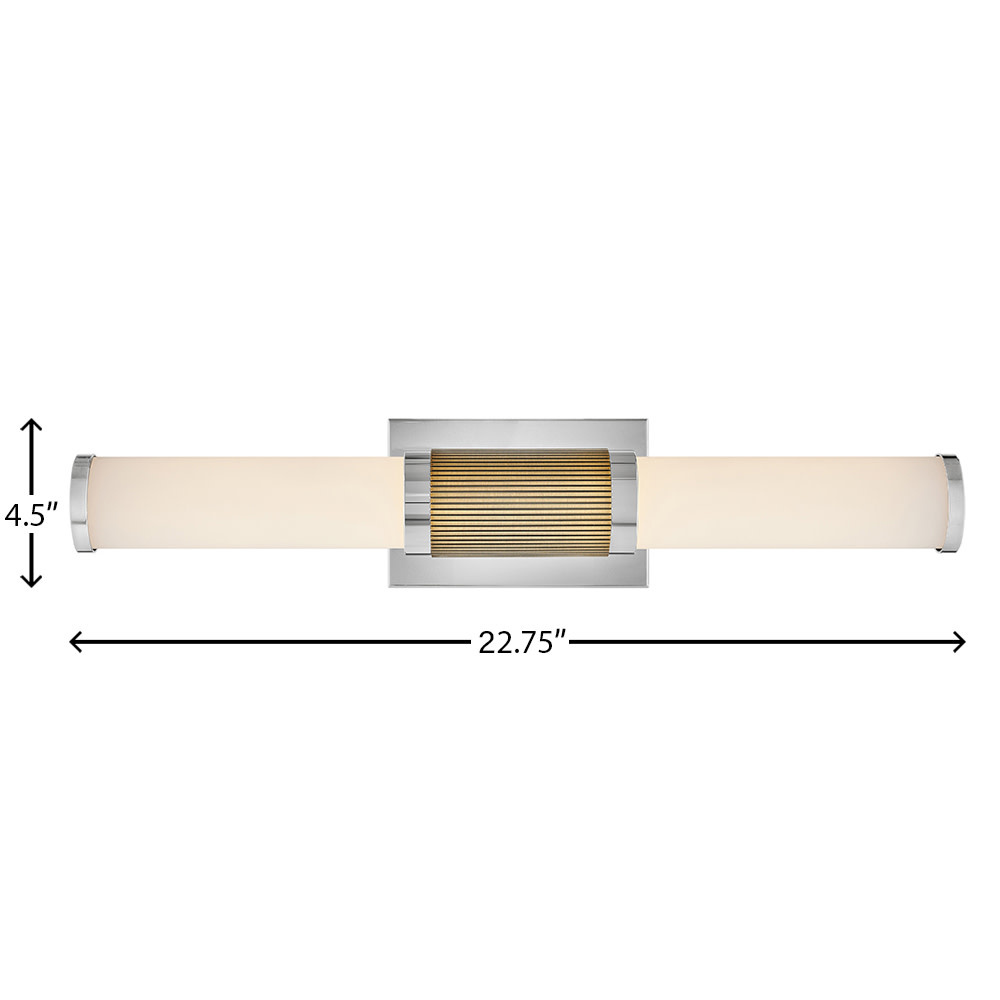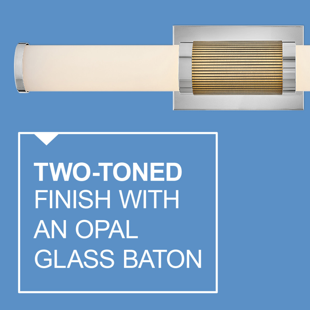 A timeless and tailored design with versatile, two-toned finish options ensures Zevi will shine among various décors. Both industrial in form and transitional in style, Zevi features a striking, signature ribbed cuff that centers an etched opal glass baton. This integrated LED sconce can be mounted vertically and horizontally and comes in three finish combinations.