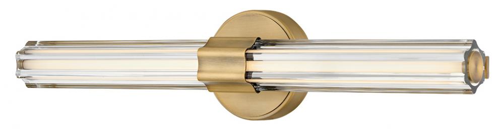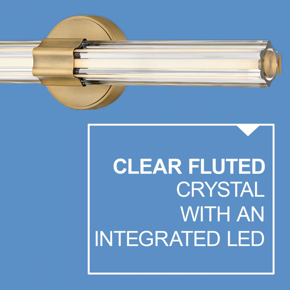 Georgette’s sophisticated silhouette is enhanced by clear fluted crystal, creating a stunning fixture with bold symmetry and captivating details. A chic central cuff and back plate provide balance and contrast that effortlessly complements any space with a Black Oxide or Lacquered Brass finish.