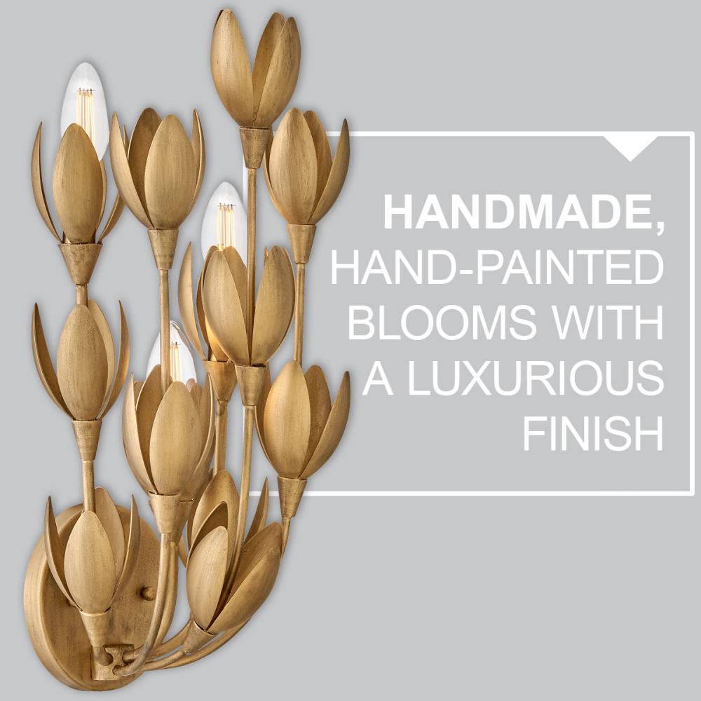 Flora is a work of art inspired by the delicate nature and beauty of florals. Blurring the line between lighting and sculpture, Flora’s handmade, hand-painted blooms mesmerizingly unfold while the bulbs beautifully nestle inside.