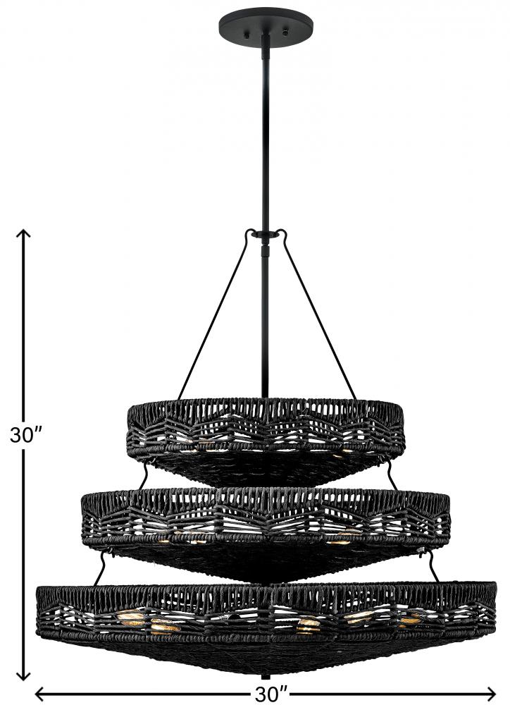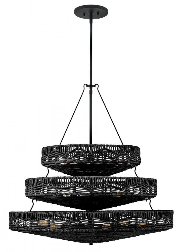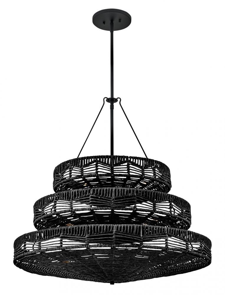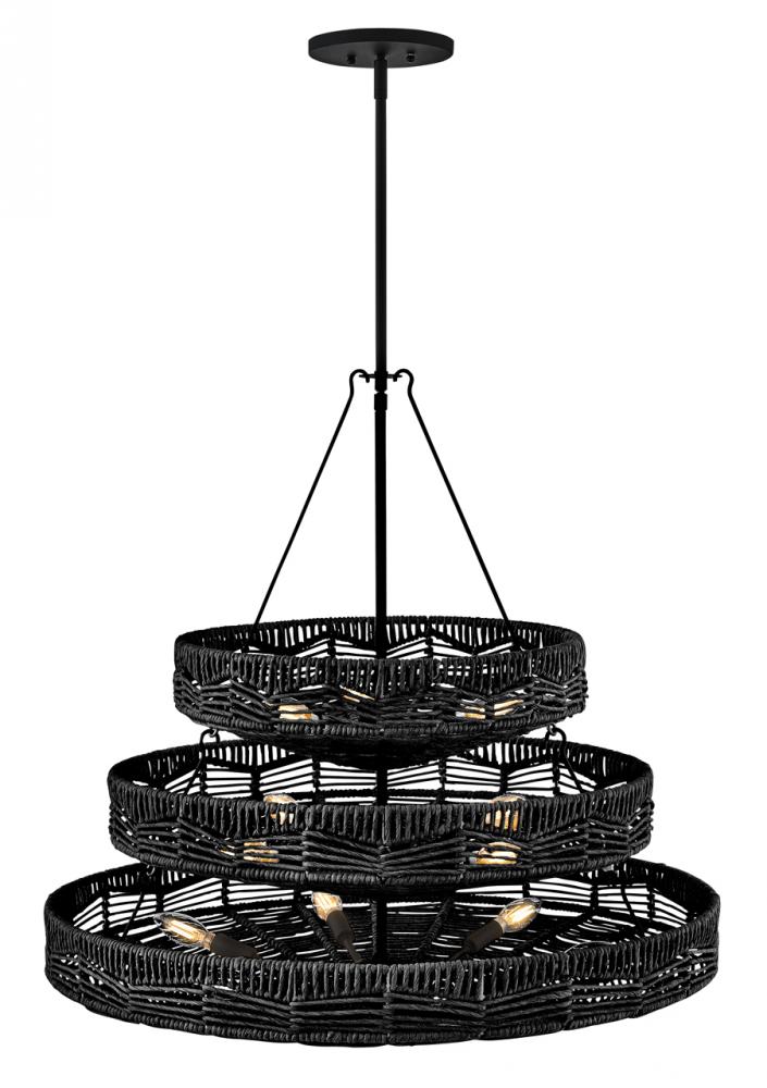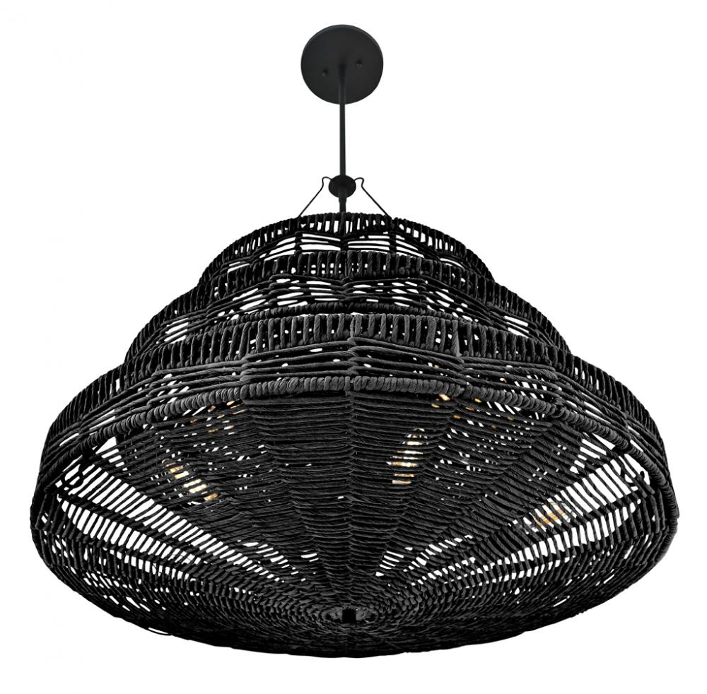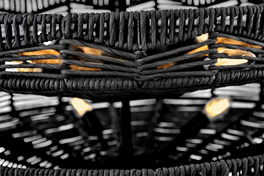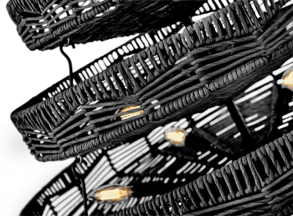 This dazzling design offers striking illumination through a beautiful handwoven pattern. Ophelia radiates with organic elegance as a natural shade adorns a tiered basket frame finished in Black.