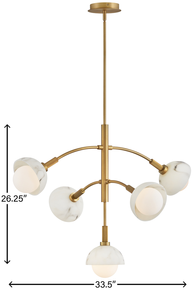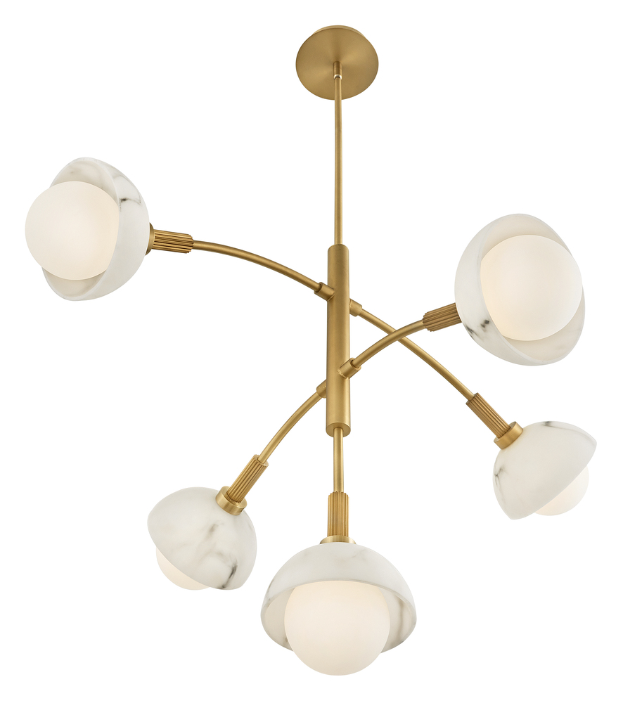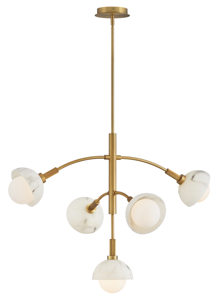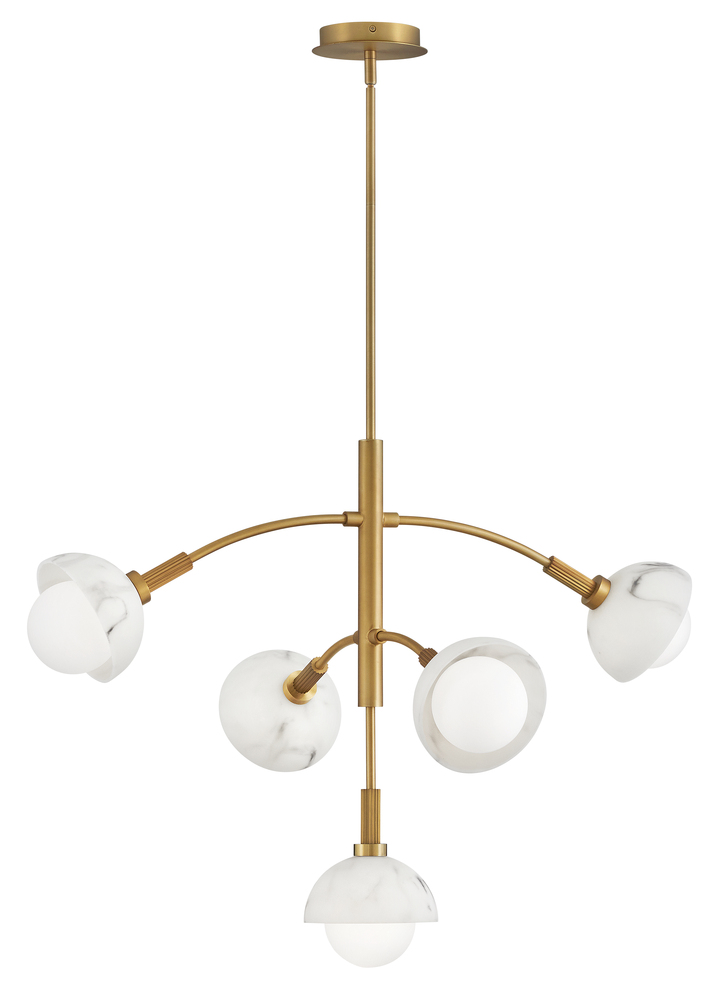 Opposing influences balance Phoebe's multi-tier chandelier with a transitional twist. This dynamic modern-style design commands attention with ribbed stem detail, faux alabaster and cased opal glass combination, and bold Black Oxide or Heritage Brass finish options.