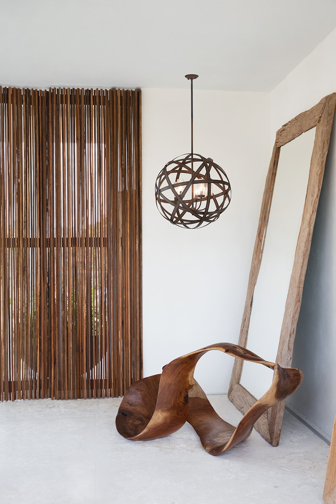 Carson features bold overlapping metal ribbons of Vintage Iron, enhancing an outdoor living area with style and substance. The handcrafted pendants combine a hint of industrial sophistication with the allure of artisan craftsmanship.