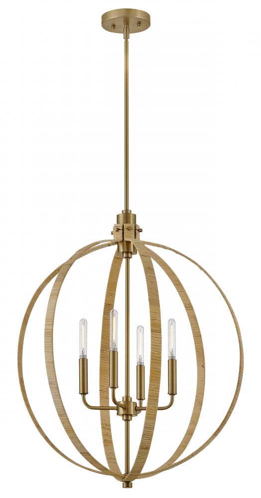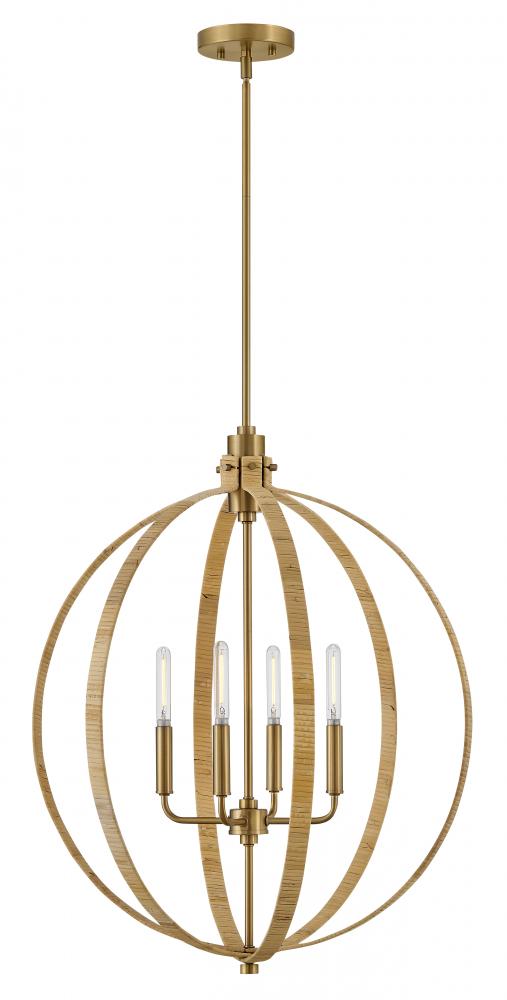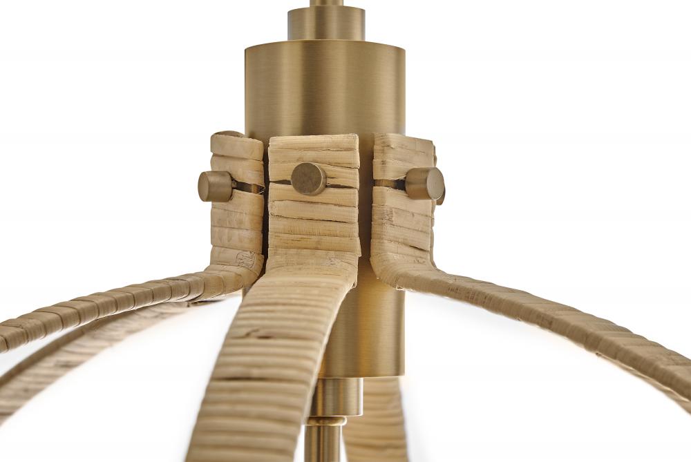 Fallon confidently embraces a fresh, organic style as brilliant lights peek out from behind a rattan-wrapped open frame. Perfect for the coastal chic aesthetic, the mixed materials and striking silhouette command attention with irresistible appeal.