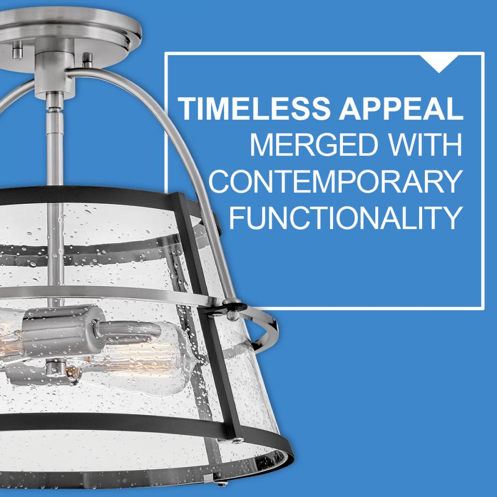 Tournon merges timeless appeal with contemporary functionality. The steel frame holds the clear seedy glass shade surrounding the bulbs within. An oversized yoke completes the mid-century modern design.