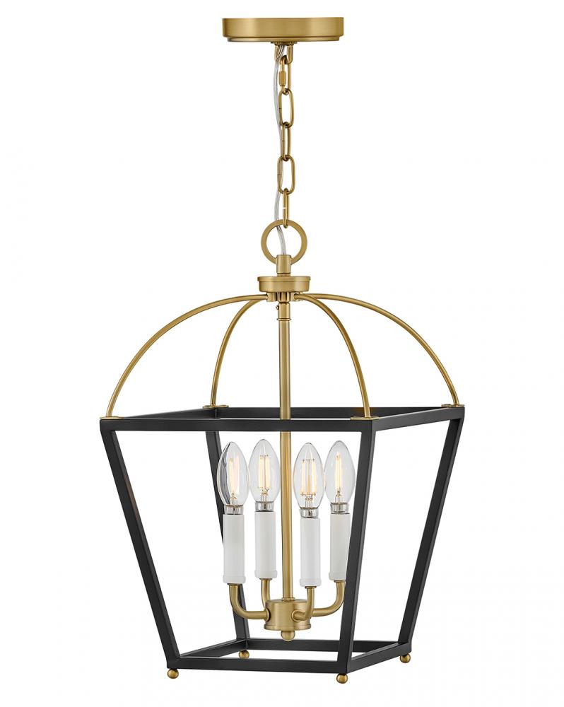 With accent curves in all the right places, Tate’s classic, lantern-style profile makes a glorious statement in any dining room or living space. Bold Black and Lacquered Brass finishes easily complement any décor.