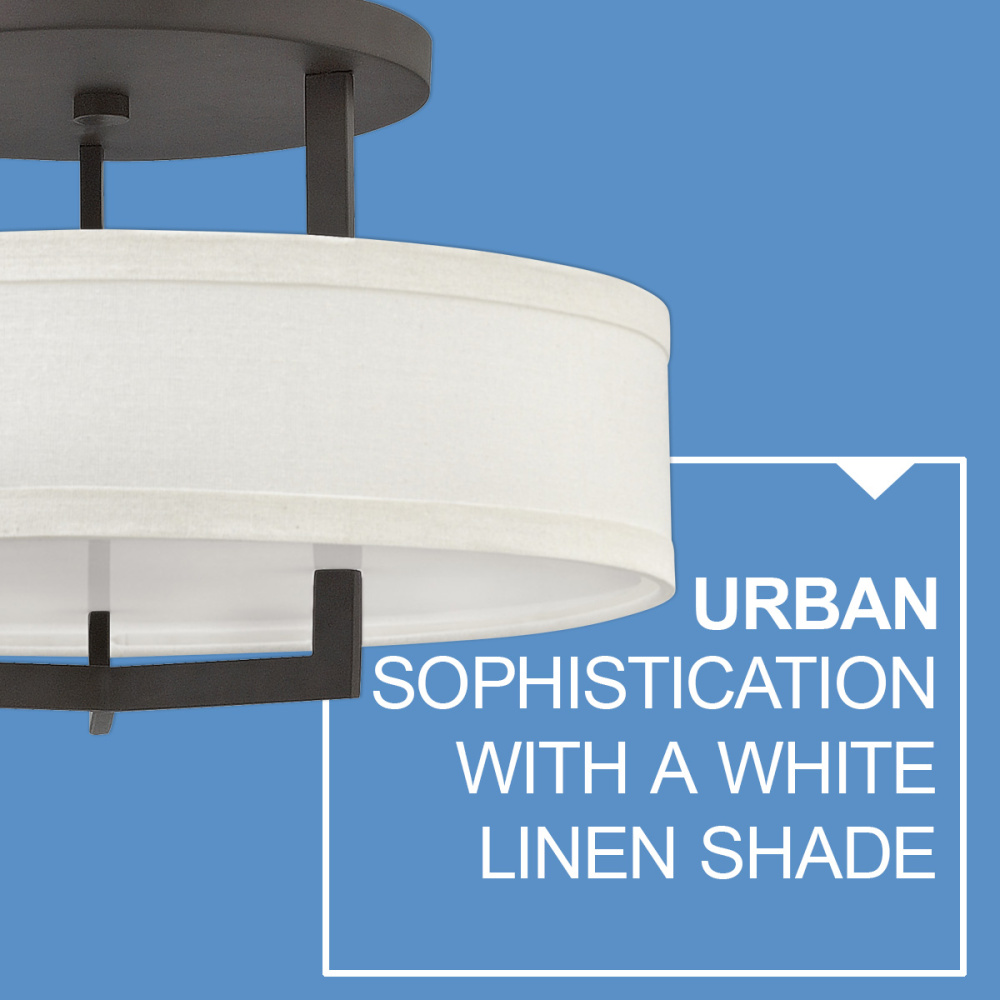 Hampton is a modern transitional design, offering the ultimate in urban sophistication. The minimal, rectangular frame is softened by a contemporary off-white linen drum shade.