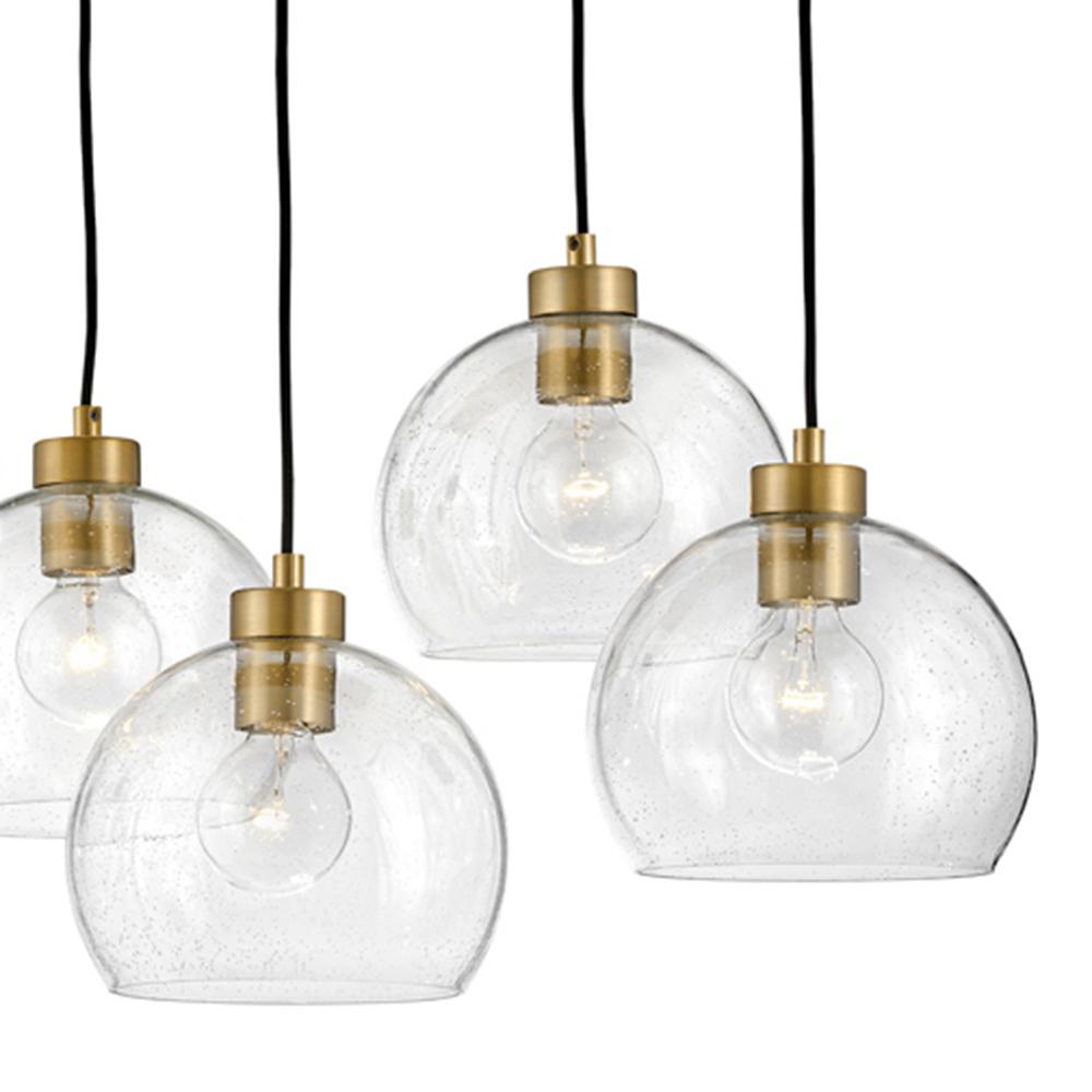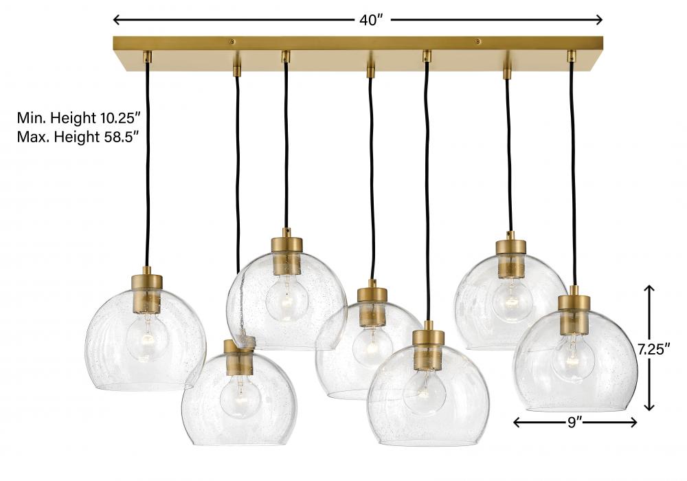 Your room will get rave reviews thanks to Rumi’s dynamic design. This modern, art-forward fixture captivates with clear seedy glass globes suspended from a sleek black cord. A Lacquered Brass finish is the flawless finishing touch. Design opportunities abound thanks to Rumi’s versatile options and adjustable height, adding a thrill to airy and cozy spaces alike.