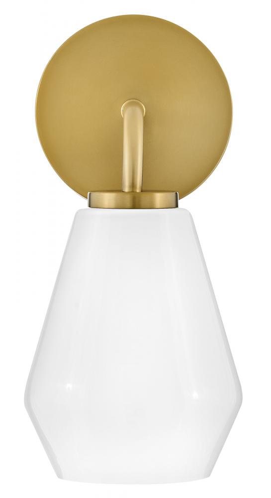 Subtle geometric elements find harmony within the sleek, curved lines of Gio. The cased opal glass covers the space in functional, diffused light while providing a nice contrast to the bold variety of finish colors. Gio’s transitional glam design and clean profile add to any bath décor.