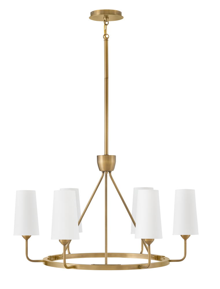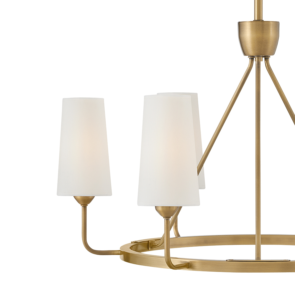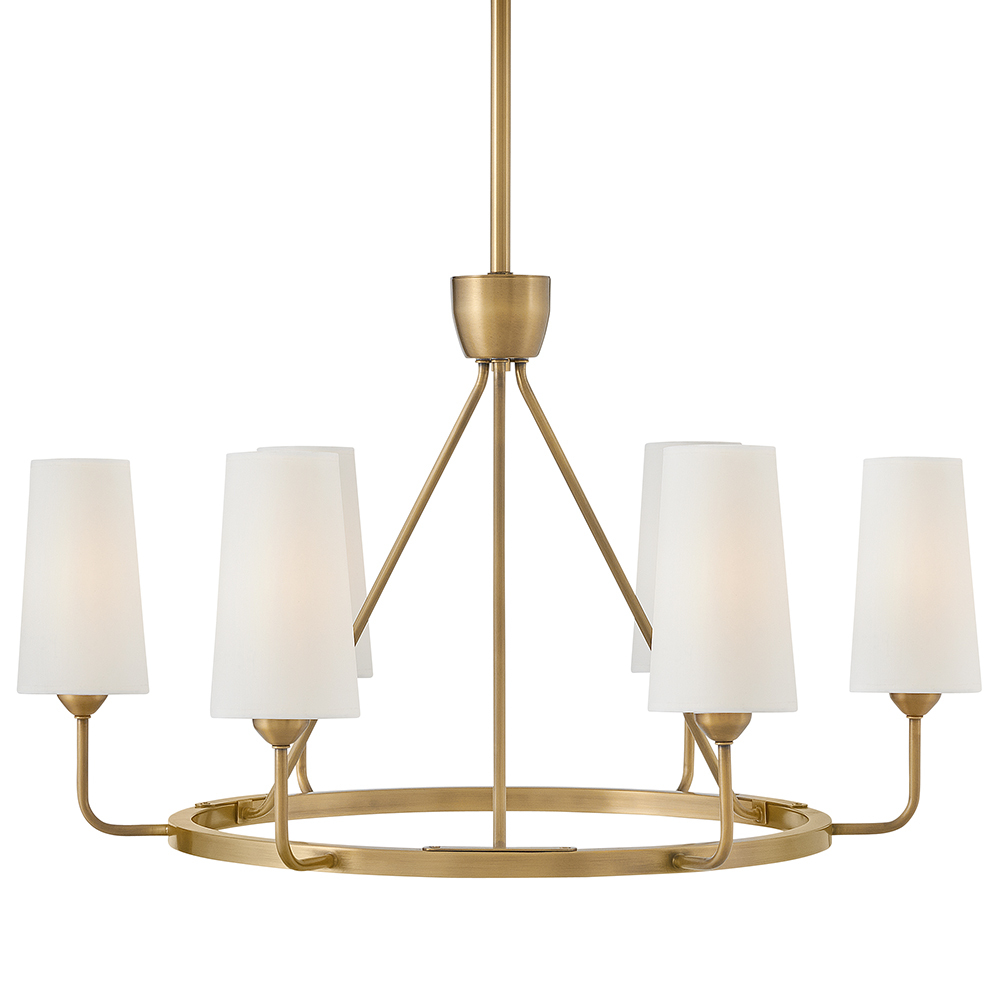 Lewis offers traditional charm paired with updated, transitional elements. Tall natural paper shades feature fine stitching detail against a Heritage Brass or Black Oxide finish to enhance timeless interiors.