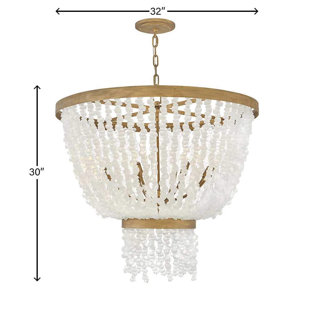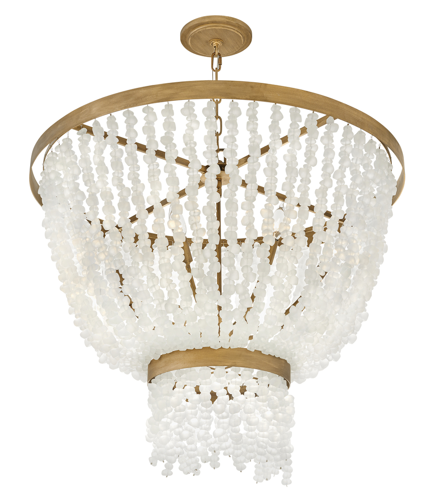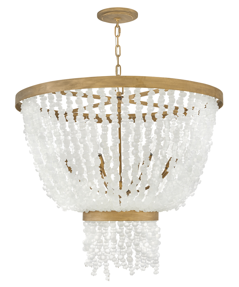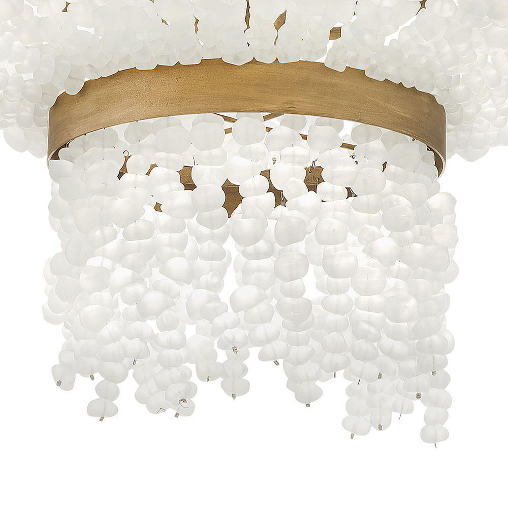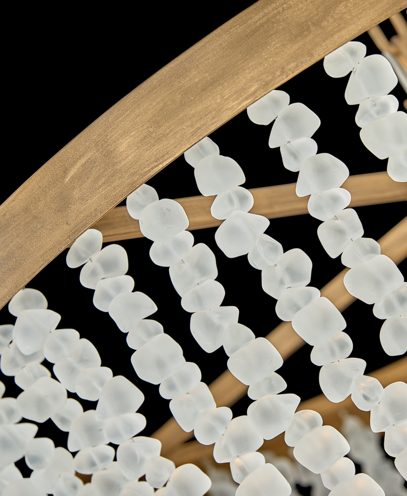 Dune's bohemian chic design showcases strands of soft sea glass combined with a Burnished Gold finish. The designs blend a sophisticated silhouette with organic elements inspired by sun and surf. Dune infuses any space with timeless, mesmerizing elegance.