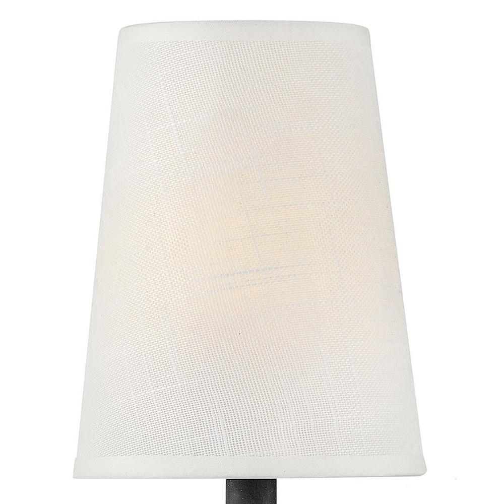 Sleek candle arms topped by softly tapered fabric shades perfectly complement Beaumont's sturdy hand-hammered details. Rustic yet traditional, the stylish transitional silhouette works well in any setting, from classically elegant to chic and modern.