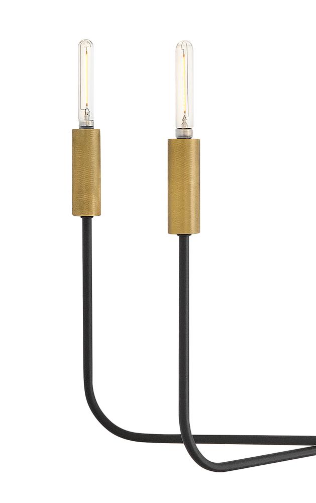 Austen’s slim, exaggerated design creates a chic transitional shape accentuated by knurled candle sleeves and stem details. Black and Lacquered Brass finishes are complemented by exposed bulbs. Experiment with different lamps to find a look that’s perfect for your space.