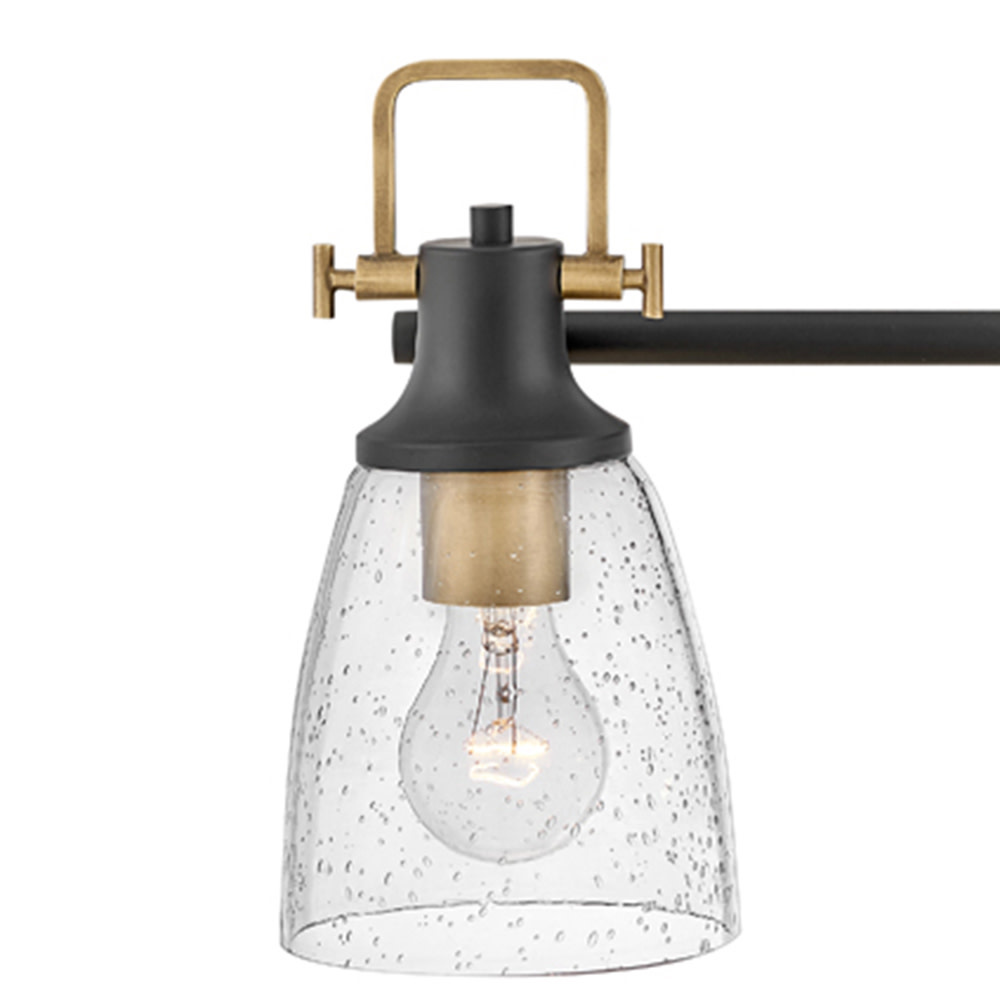 With style elements that blend both hip and historical, Easton exudes a modern industrial vibe. Bold clear seedy glass shades pair with a distinctive top yoke and vintage-inspired knobs for a robust silhouette.