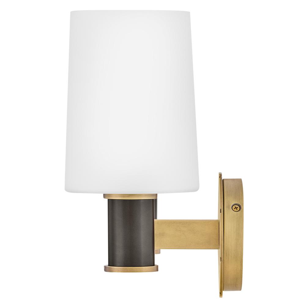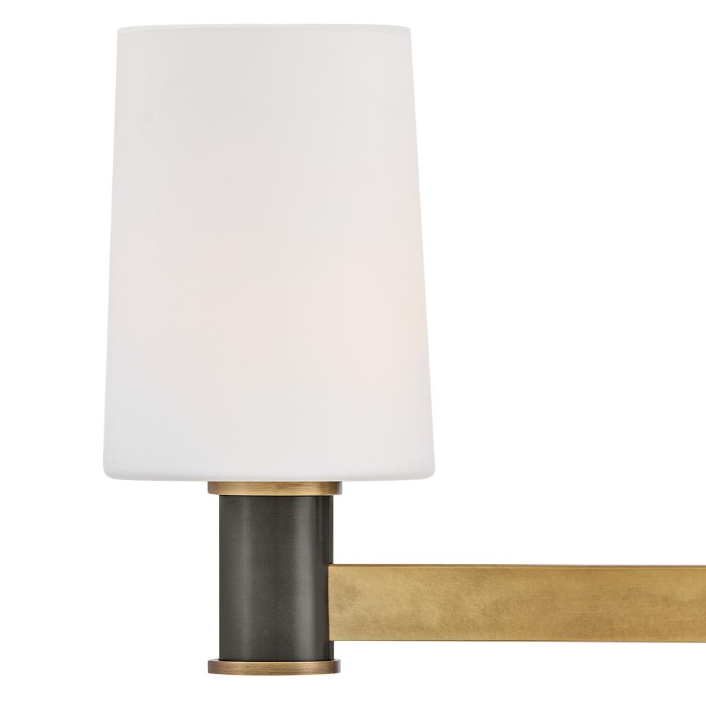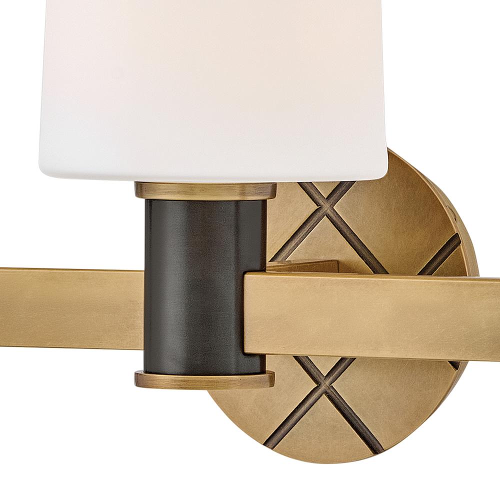 Featuring a geometric, crosshatch motif, Declan’s substantial silhouette is enhanced by a heavy cast backplate and stem accentuated by a contrasting, two-tone finish. Tall, tapered, etched opal glass shades create softly diffused illumination and a comfortable atmosphere.