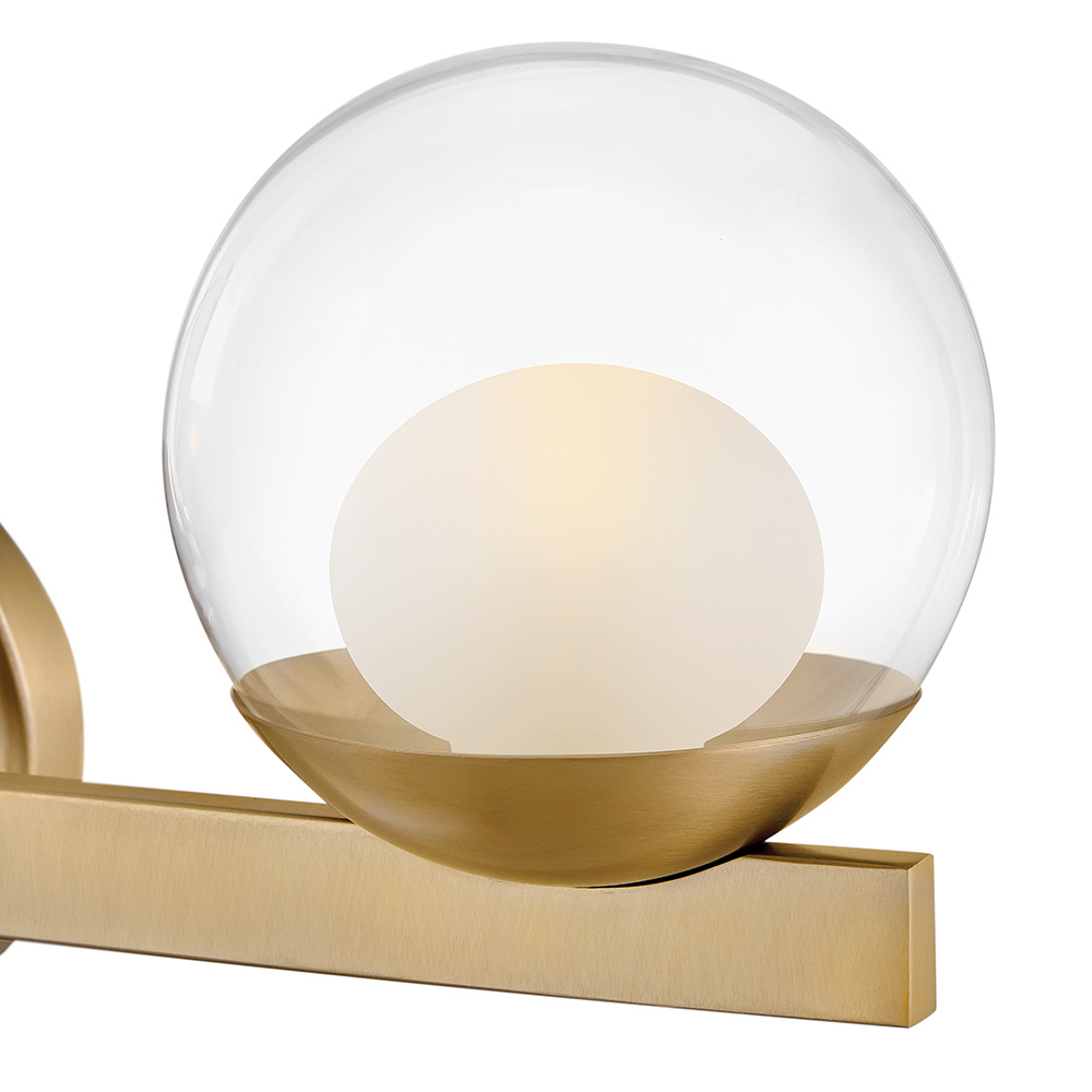 Sophisticated with an ultramodern twist, Sunni’s sleek design showcases a distinctive glass globe that artfully layers a clear glass outside with an etched white interior. A minimal backplate and frame are finished in a bold Black or luxurious Lacquered Brass finish to easily complement your space.