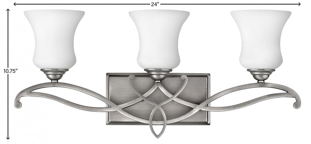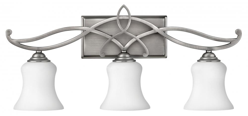 Brooke's updated traditional look features a minimalist forged scroll design in Antique Nickel and Olde Bronze that elegantly complements its etched opal glass.