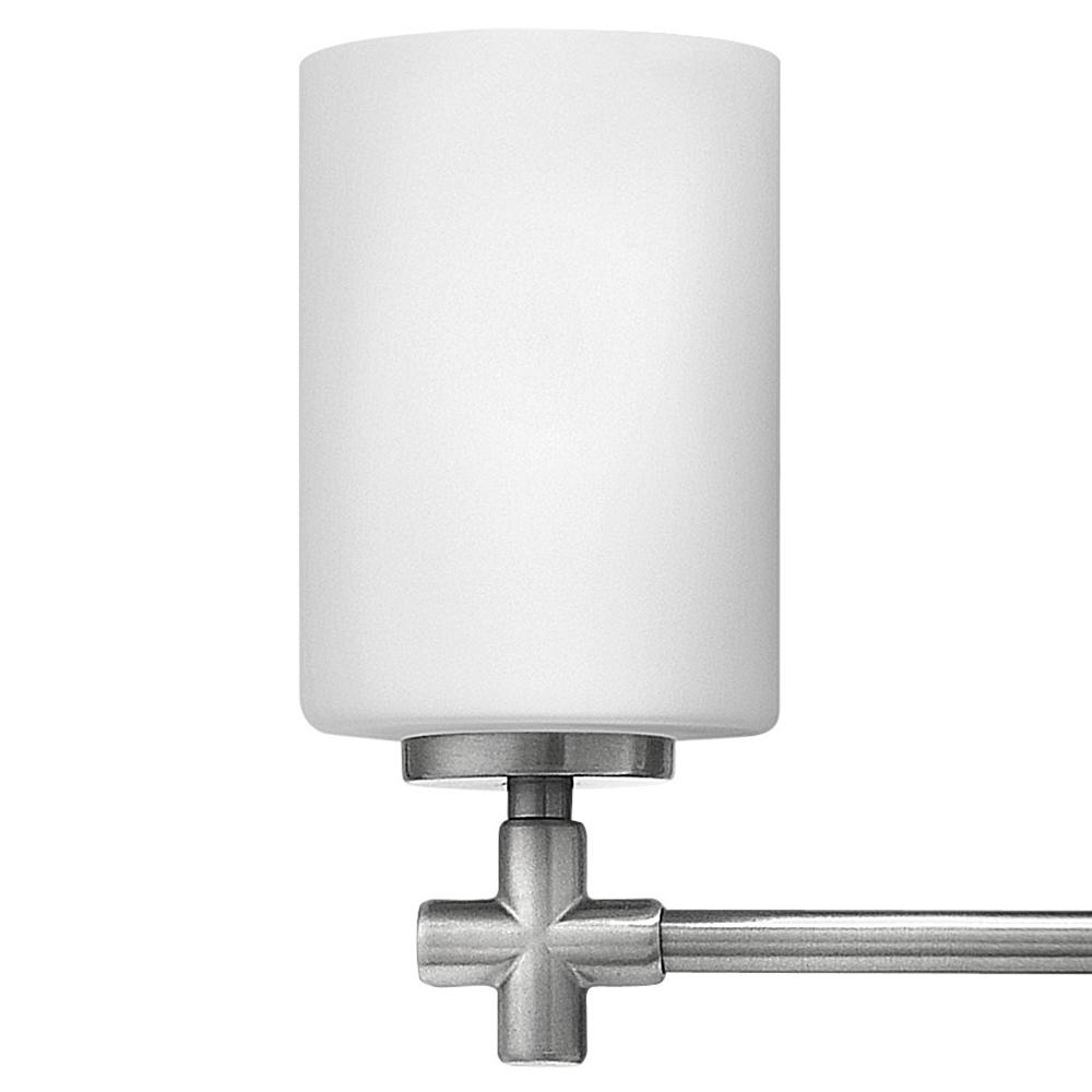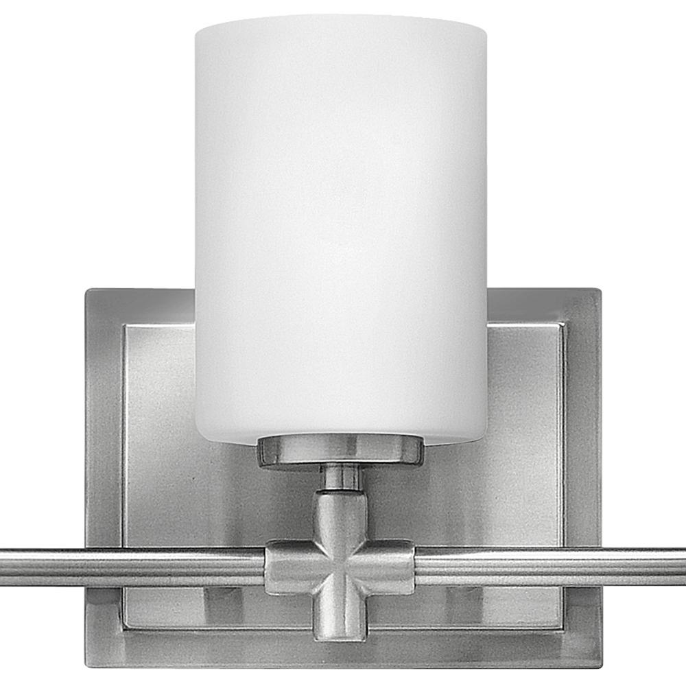 Laurel's appealing form combines both traditional and transitional design elements. Available Brushed Nickel, and features etched opal glass shades and medium base bulbing. Chic details, such as a precision die-cast cross reminiscent of a timeless faucet handle, and a cast stepped backplate, convey a lasting elegance.