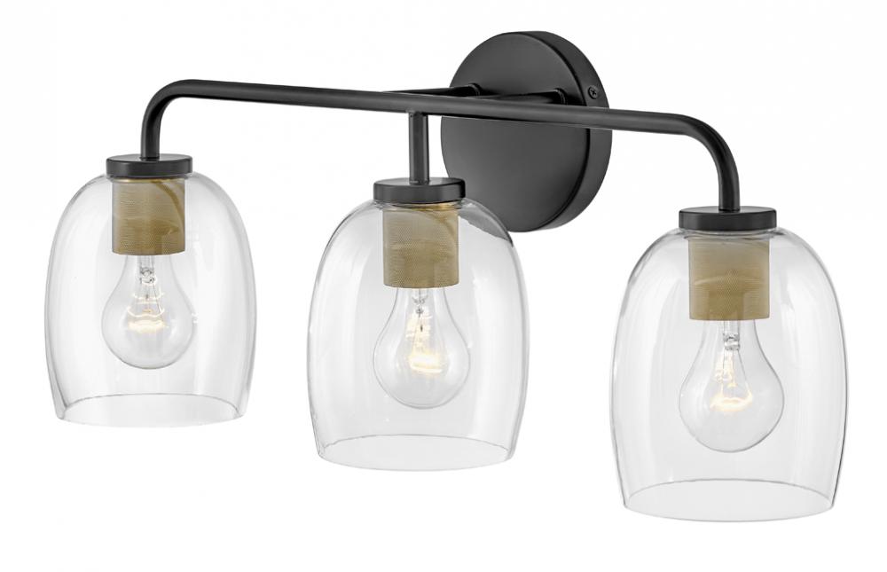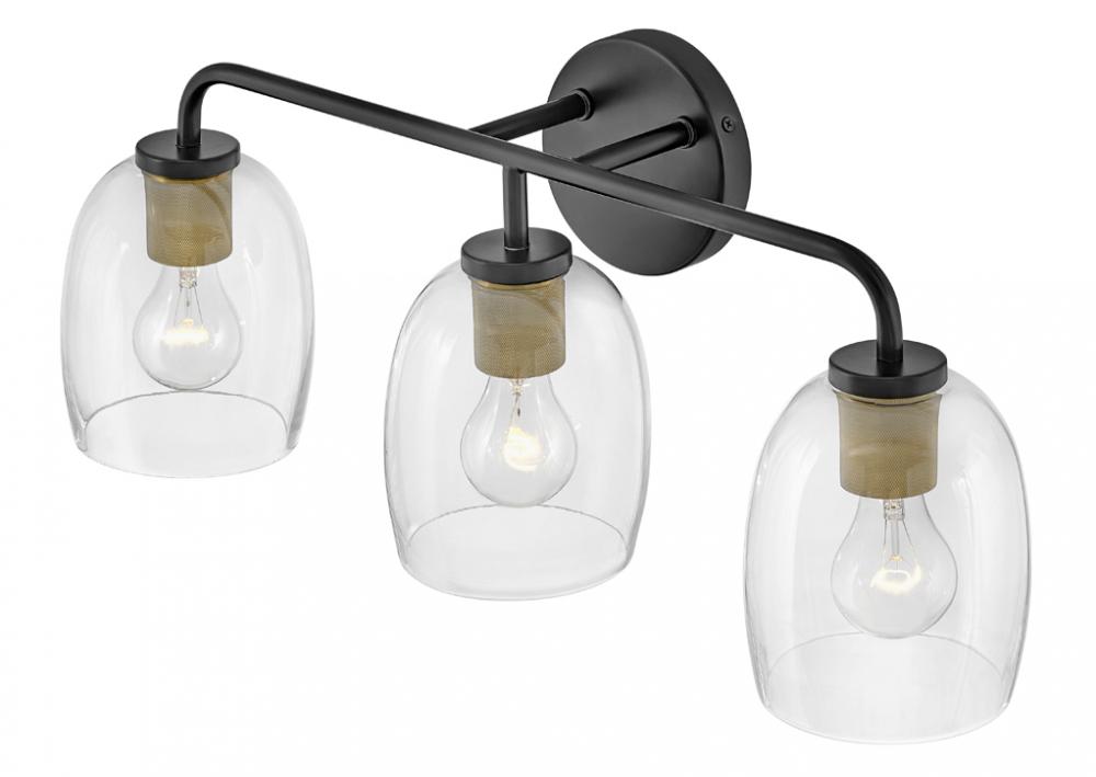 Percy’s transitional style rings loud and clear with clever bell-shaped clear glass designed to highlight its distinctive industrial detailing, all while serving up ample illumination. Easily installed up or down, Percy transforms any bathroom into one of the most stylish spots in the house. A collection of 3 versatile finish options, Antique Nickel, Black and Lacquered Brass, lets you pick the perfect Percy for powder rooms and primary baths alike.