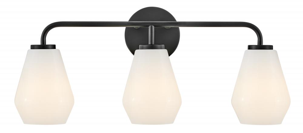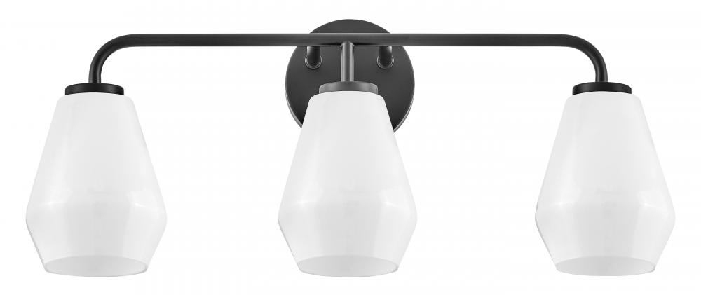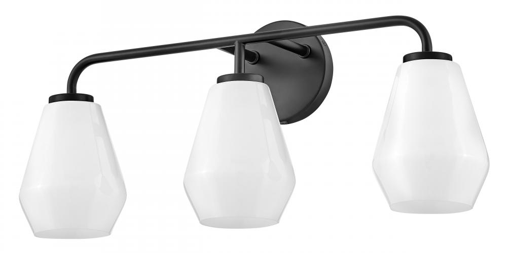 Subtle geometric elements find harmony within the sleek, curved lines of Gio. The cased opal glass covers the space in functional, diffused light while providing a nice contrast to the bold variety of finish colors. Gio’s transitional glam design and clean profile add to any bath décor.