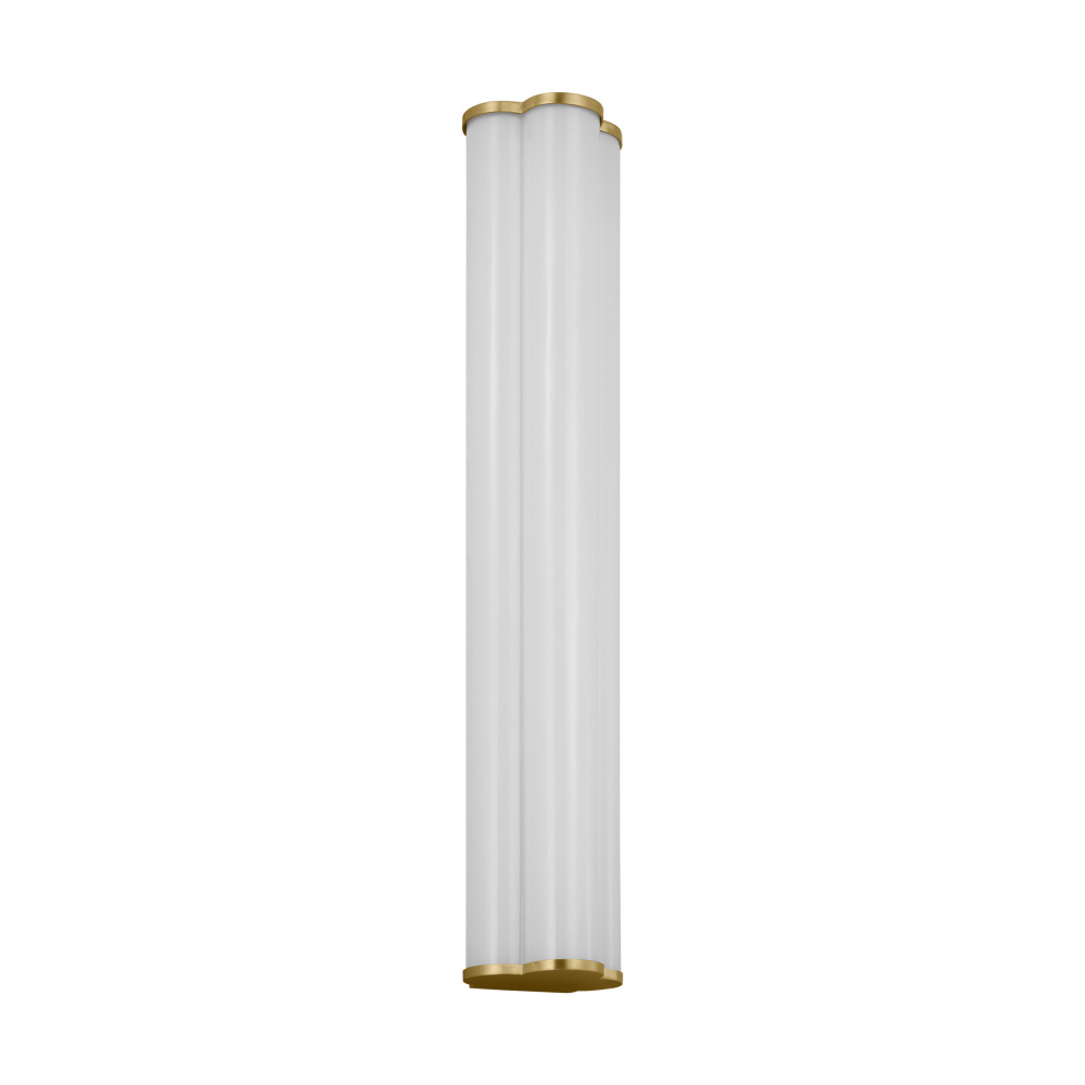 The Freya is a unique design by kate spade new york with three milk glass cylinders resting on a Burnished Brass back plate that can be placed vertically or horizontally. These wall lights are also technologically savvy, fitted with an integrated LED. With their sleek and chic design, the Freya vanity fixtures effortlessly complement any decor style, adding a dash of glamour to your dressing room, bathroom, or bedroom.