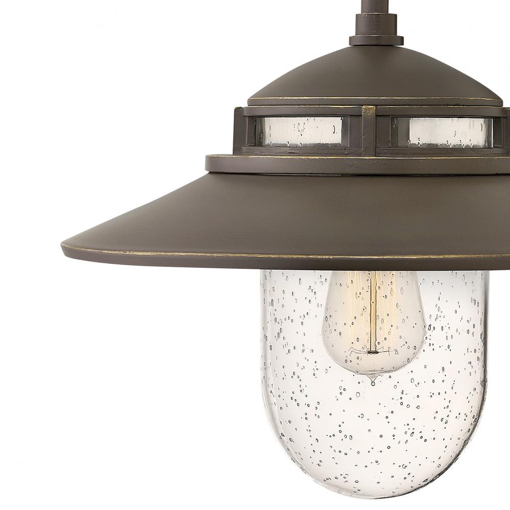 Industrial-inspired Atwell recalls turn-of-the-century American factory lighting. Aged Zinc and Oil Rubbed Bronze finish options reinforce its vintage silhouette. Clear seedy glass and authentic details like gooseneck arms and bespoke backplate enhance Atwell’s nostalgic appeal.