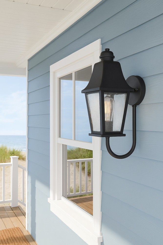 Effortlessly elegant, Kingston embraces traditional features and visual intrigue to illuminate exterior spaces, while its sturdy aluminum construction ensures durability to withstand outdoor elements. The classic lantern design highlights an oversized soft sweeping roof and bottom arm, clean lines, and a Black finish. Kingston's removable hood allows for easy bulb replacement.