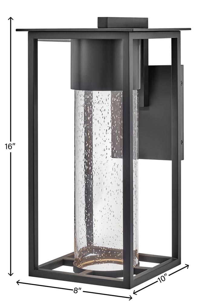 Coen is an instant favorite with timeless design featuresand a modern edge. Clear seedy glass exudes a radiant glow to make a home's exterior shine. This slender frame is constructed of composite materials, and coated with a finish that can withstand harsh elements. Available in a Black or Oil Rubbed Bronze, Coen is also Dark Sky compliant and includes an LED bulb.