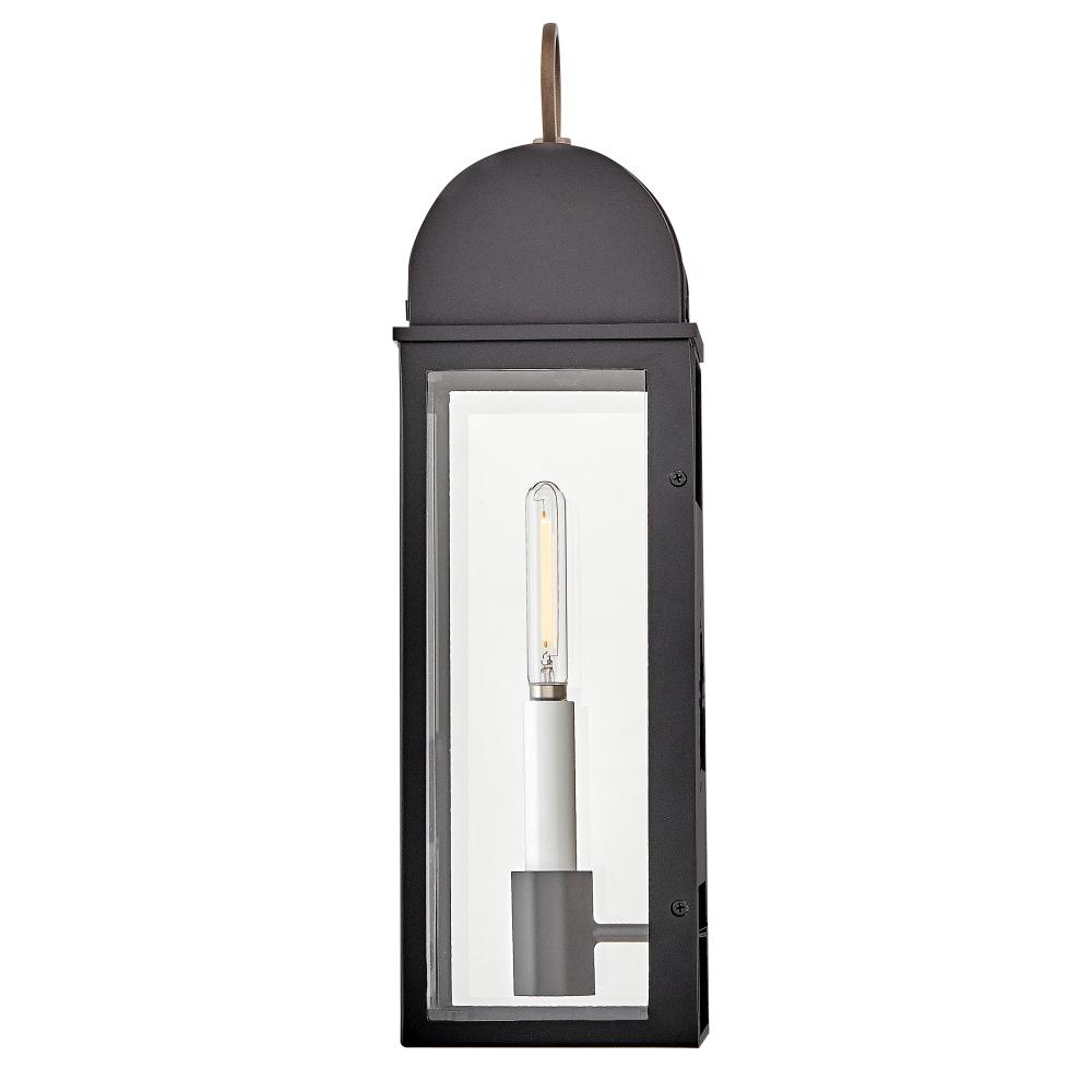 Inspired by traditional colonial lanterns, Campbell’s carriage house styling complements classic architecture accentuated by a bold arched roof and a cast top ring. Candelabra lamps with contrasting warm white candle sleeves are enhanced by a Black with Burnished Bronze finish and a reflective backplate.
