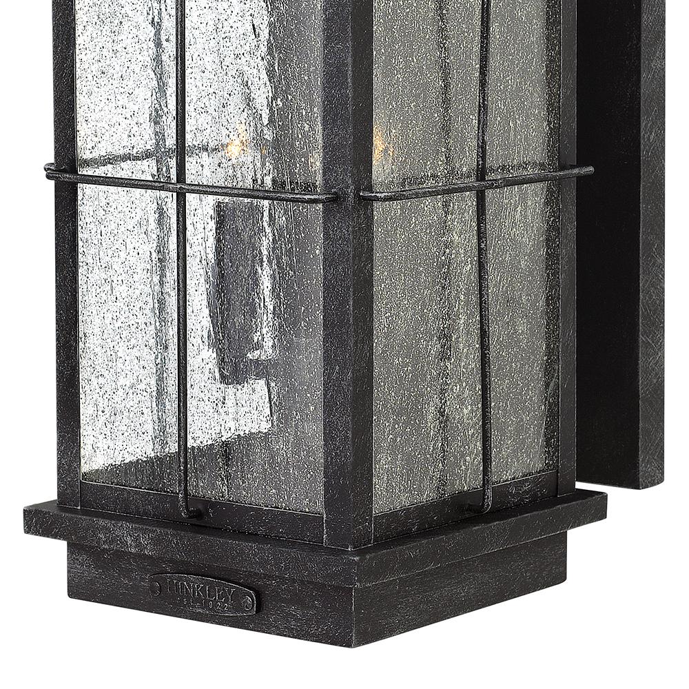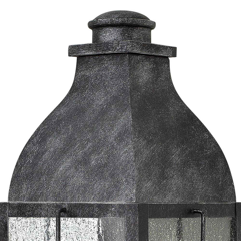 Bingham’s traditional style recalls a turn-of-the-century gas light reproduction. The vintage look is nautical in nature and recognizes Hinkley’s origins on the shores of Lake Erie. The aluminum construction features clear seedy glass and a Greystone or Sienna finish, while candelabra bulbing completes the authentic style.