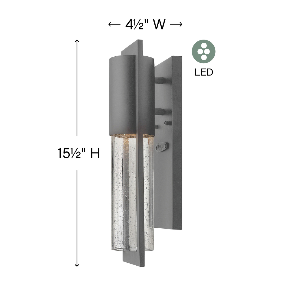 Shelter’s minimalist style in aluminum creates a chic, dramatic statement as the light from above grazes through its clear seedy glass. Shelter comes standard Dark Sky compliant.