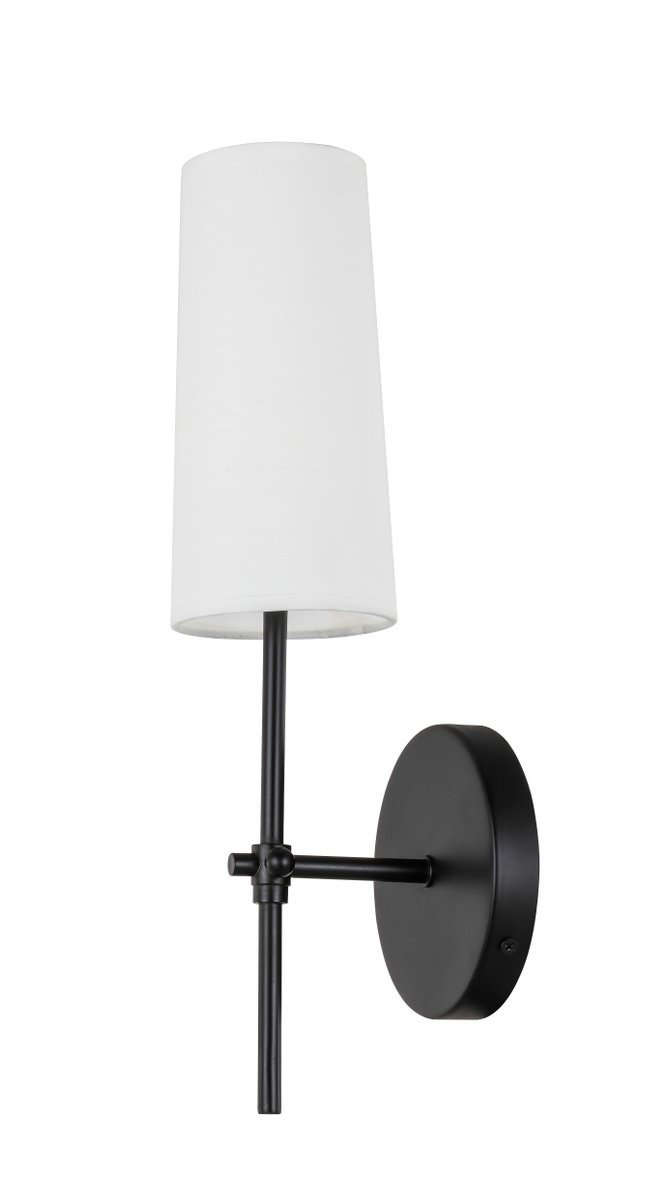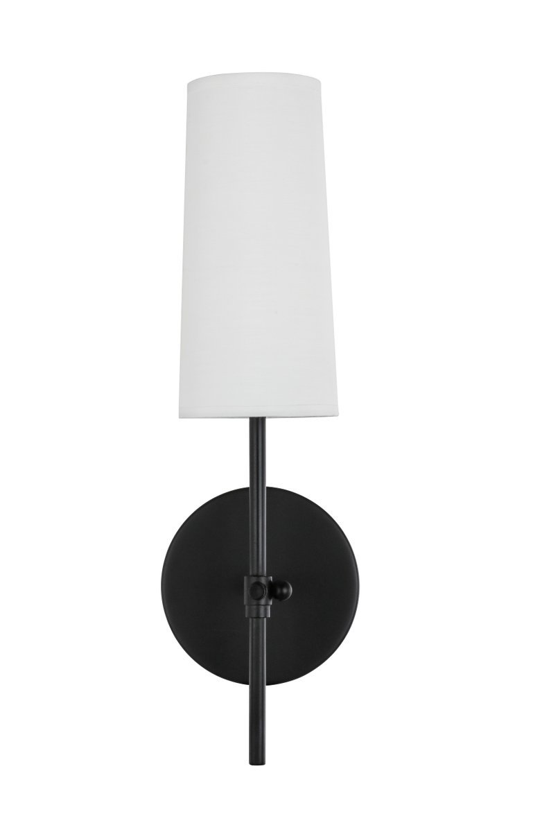 The Mel Collection of wall lamps adds refined simplicity to your life. Its unassuming design is versatile to blend in with any décor, but the sleek rod and clean linen shade adds contemporary elegance and style. Adding a breath of fresh air, this wall lamp, available in a black, polished nickel, or a two-toned brass and black finish, is the perfect addition to your bathroom or entryway (light bulbs not included).