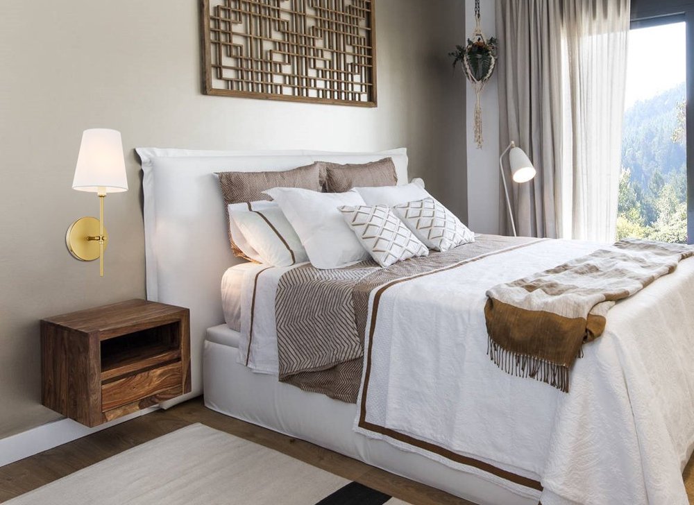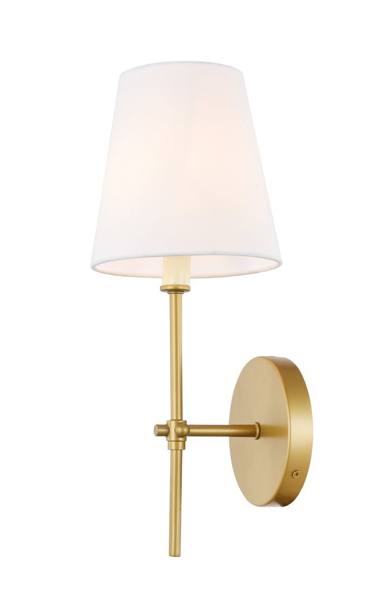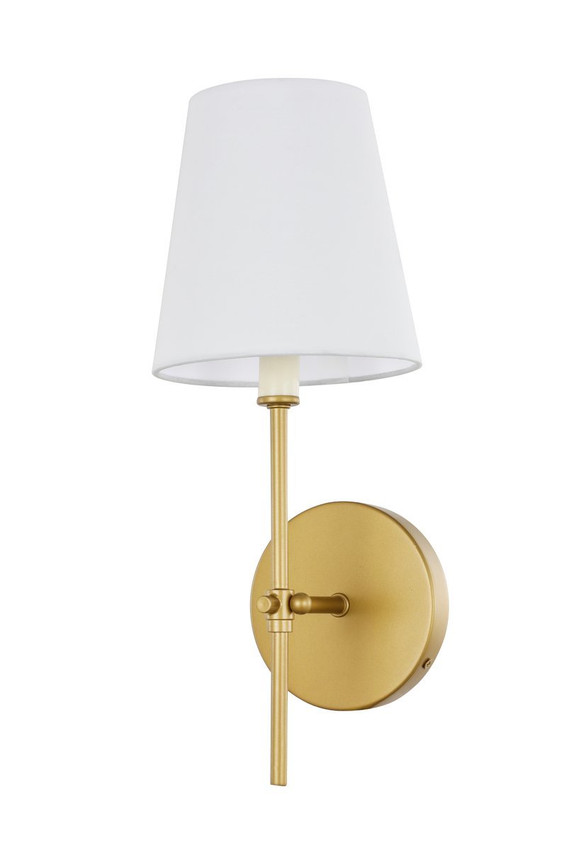 The Mel Collection of wall lamps adds refined simplicity to your life. Its unassuming design is versatile enough to blend in with any décor, but the sleek rod and clean linen shade adds contemporary style and elegance. Adding a breath of fresh air, this wall lamp, available in a brass or two-toned brass and black finish, is the perfect addition to your bathroom or entryway.