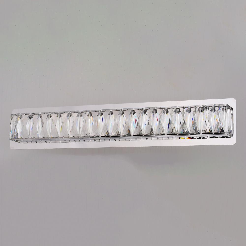 Transform your bathroom into a sanctuary of luxury with the Melrose LED Vanity. Its full backplate and gleaming chrome finish exude a sense of glamour that's both modern and timeless. The integrated LED technology illuminates your space with bright, energy-efficient light while highlighting the vanity's sparkling crystal diffuser, adding an extra layer of elegance to your daily routine.