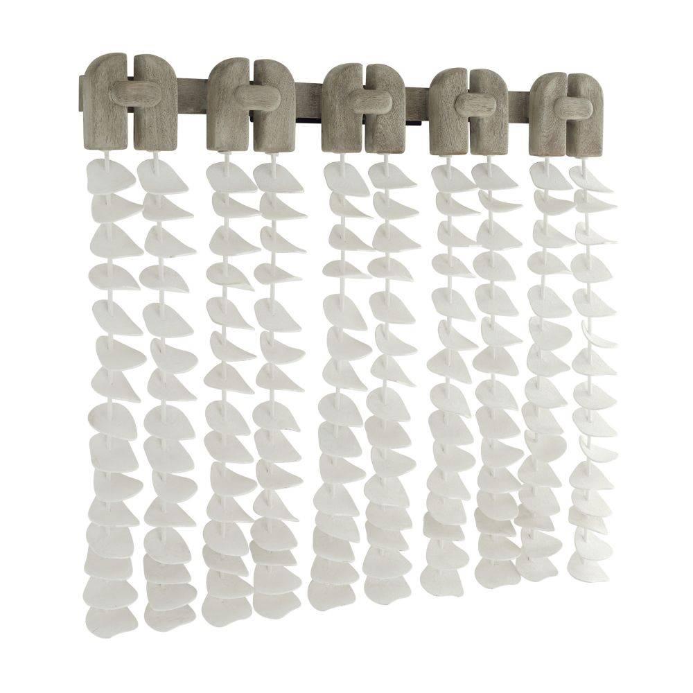 Echoing the design language of our Melt entry table, the Melt wall decor's decorative smoke wood armature supports a cascade of hand-formed petals in white gesso-plated iron, strung in a series of vertical rods. A study in material contrast and diverse movement, this compelling piece suits a wide range of spaces. Finish will vary.