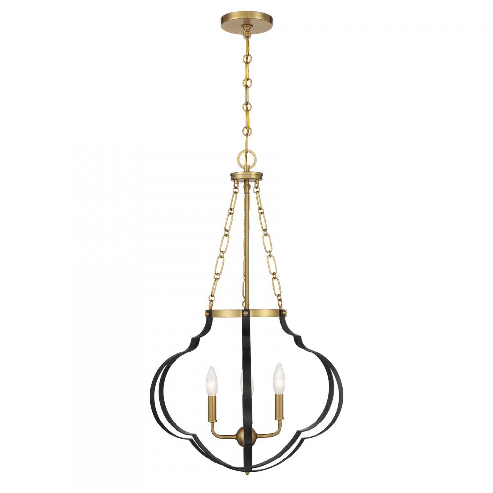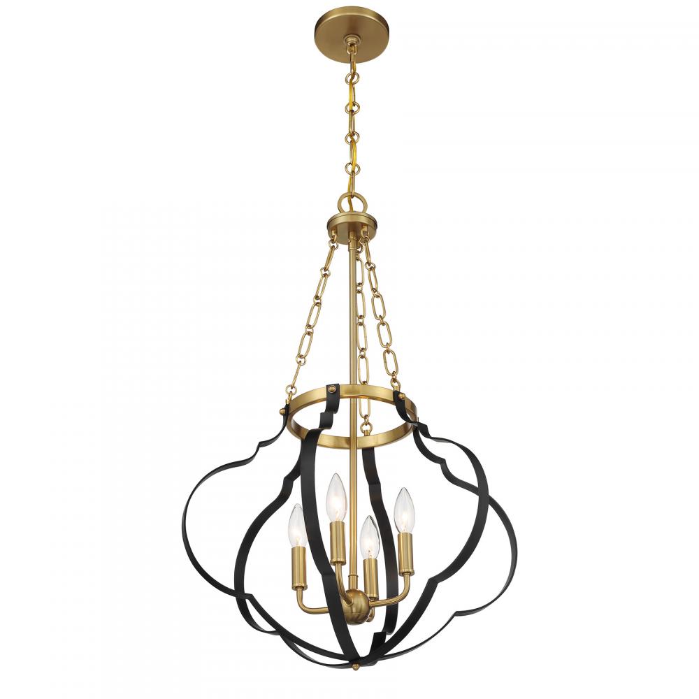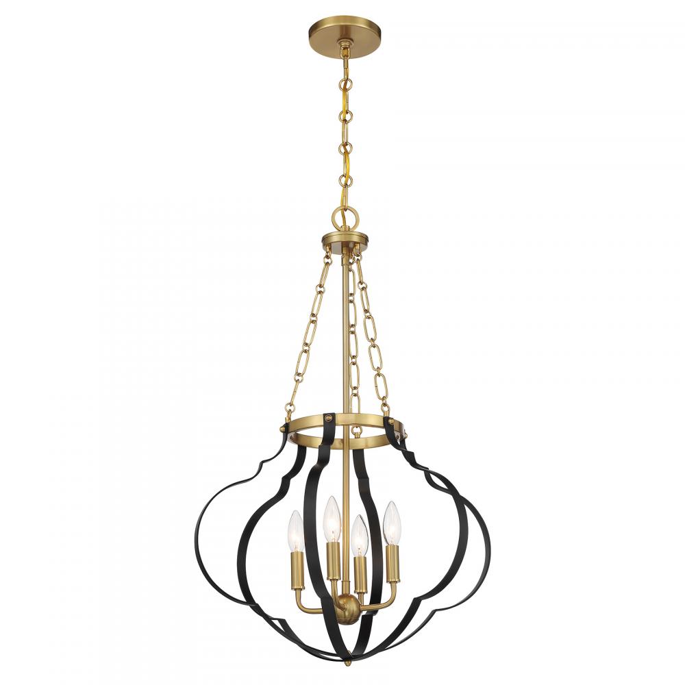 The magnificent Mercer 4-light pendant from Savoy House takes a traditionally-inspired design and gives it a fresh twist with an open, airy structure featuring the iconic quatrefoil shape. The Matte Black with Warm Brass Accents finish is a standout of two-tone allure. Mercer is 32" in height and 20" in width. It uses four candelabra size bulbs of up to 60 watts per bulb. Bulbs not included. Comes with 120" of chain.